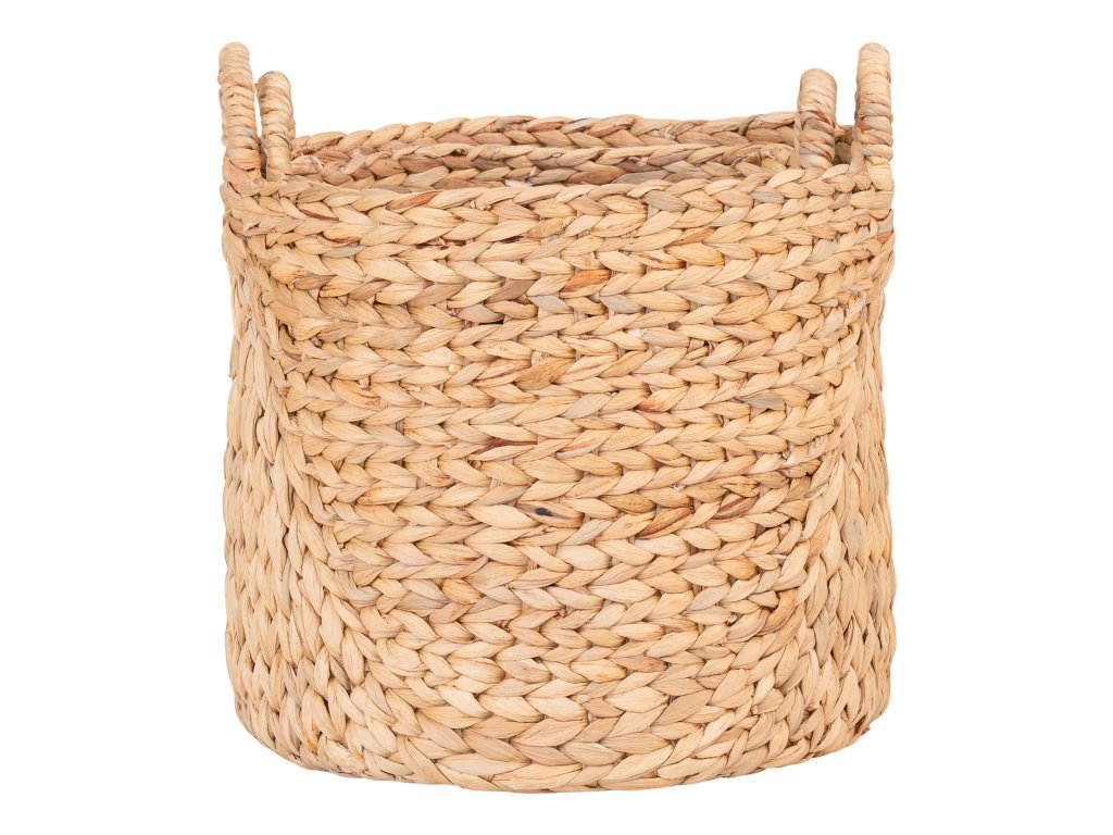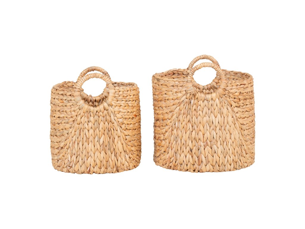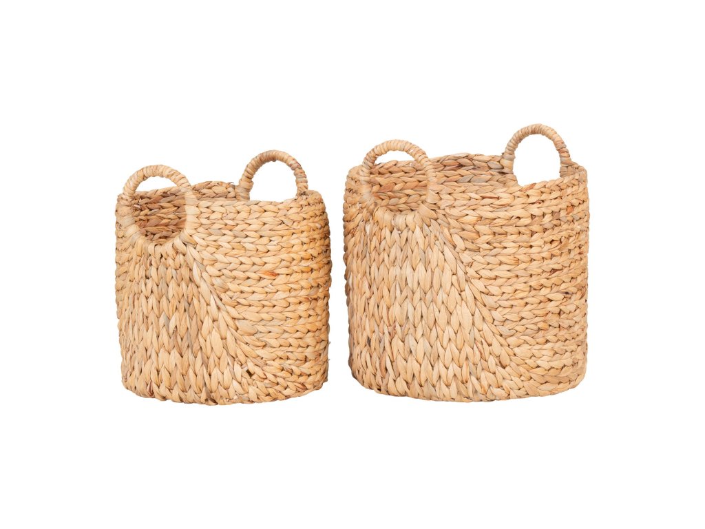Přírodní set dvou košíků Passo z vodního hyacintu je stylový a funkční doplněk do každé domácnosti. Ručně pletený design v přírodním odstínu vnese do interiéru útulnost a harmonii, zatímco praktické úchyty zajišťují snadnou manipulaci a přenášení.