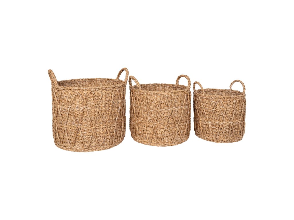Set 3 kulatých košů s uchy, mořská tráva, přírodní, Krabi