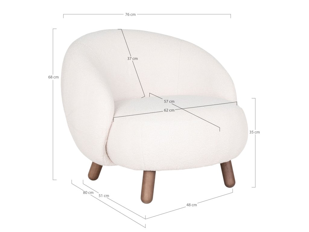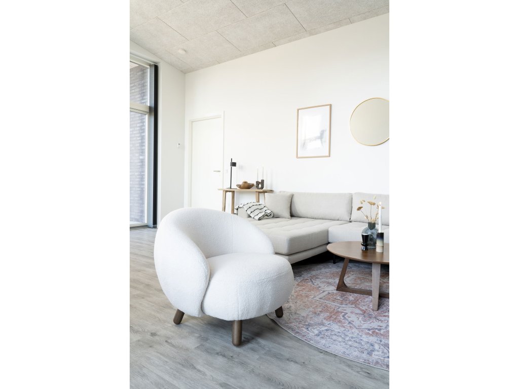 Elegantní a útulné křeslo Savona v krémovém bouclé potahu přináší do interiéru pocit tepla a komfortu. Jeho měkká textura a nadčasový design z něj dělají ideální kousek jak do obývacího pokoje, tak i do klidného koutku pro relaxaci s knihou nebo šálkem kávy.