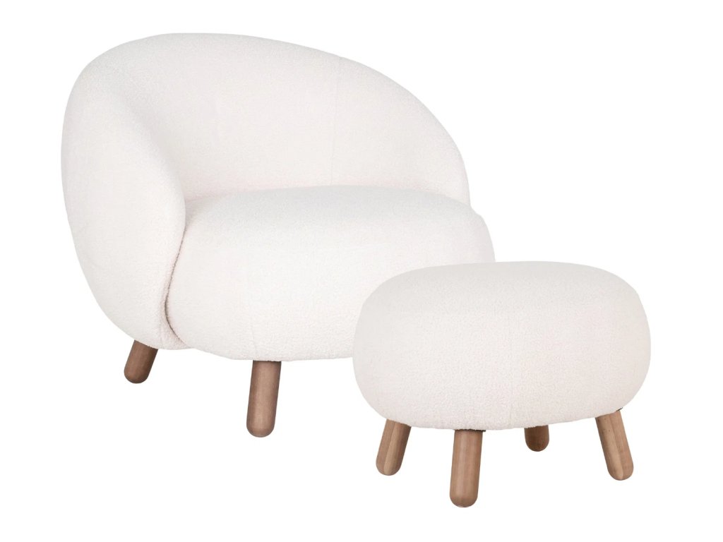 Křeslo s podnožkou z textilie bouclé, krémové, Savona