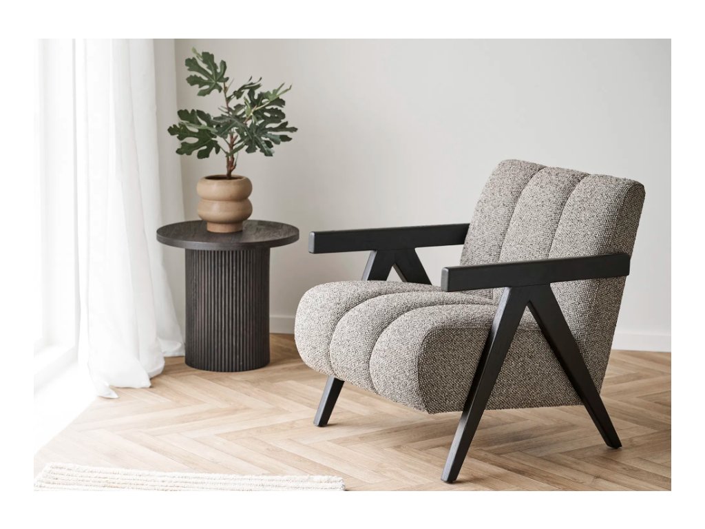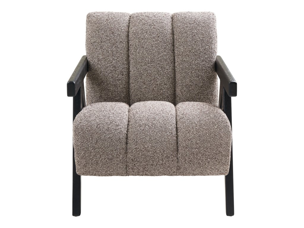 Křeslo z textilie bouclé ve světle šedé barvě s elegantním a moderním designem. Měkké a pohodlné sedadlo spolu s ergonomickým tvarem zajišťují komfort při sezení. Ideální do obývacího pokoje nebo pracovny, přidává prostorům útulný a stylový vzhled.