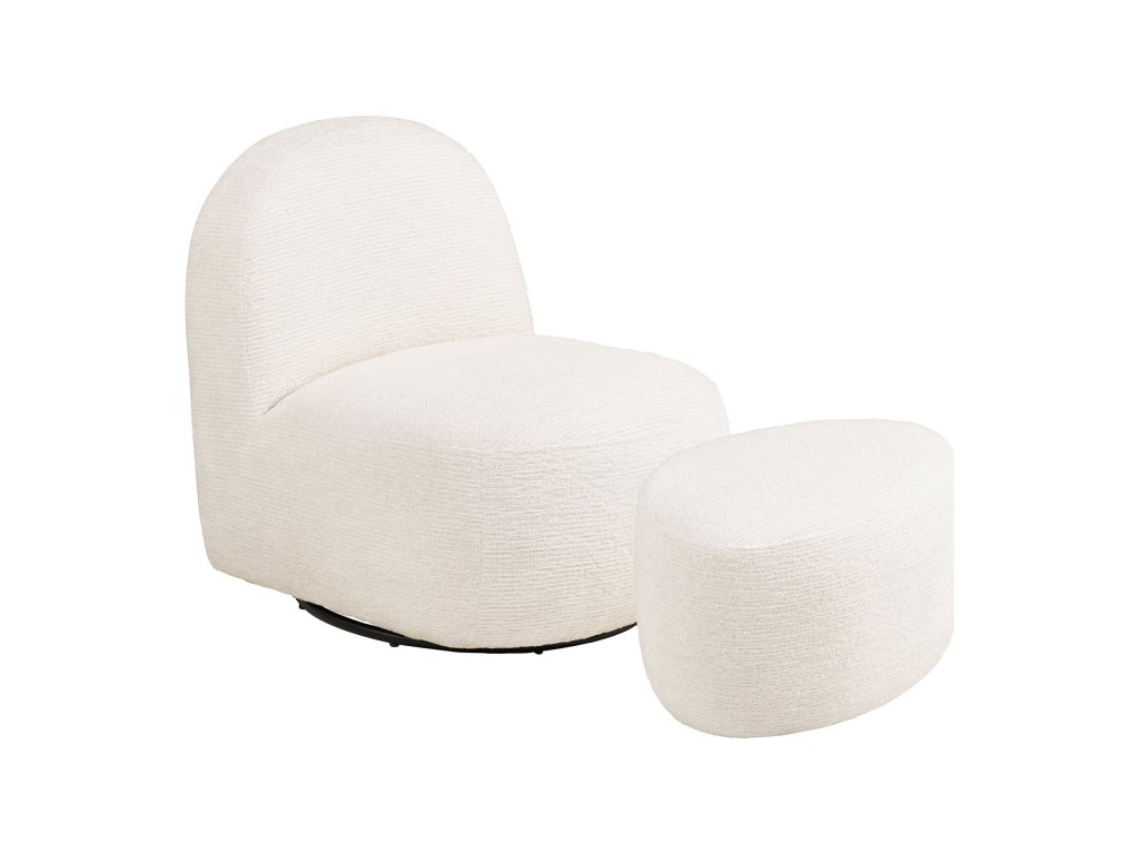 Otočné křeslo s podnožkou, krémově bílá, Milo