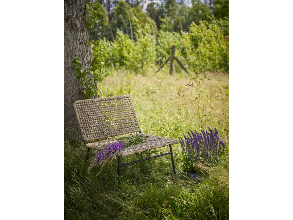 Křeslo Vallone Lounge Chair od Bloomingville je pohodlné a stylové křeslo s tkaným polyratanem a robustním kovovým rámem. Křeslo navodí uvolněnou atmosféru, která vede k příjemným rozhovorům. Praktický materiál zajišťuje přirozený estetický vzhled, díky čemuž je ideální pro relaxační chvíle na terase nebo na zahradě. Nábytek doporučujeme umístit do krytých prostor.Doplňkové parametry