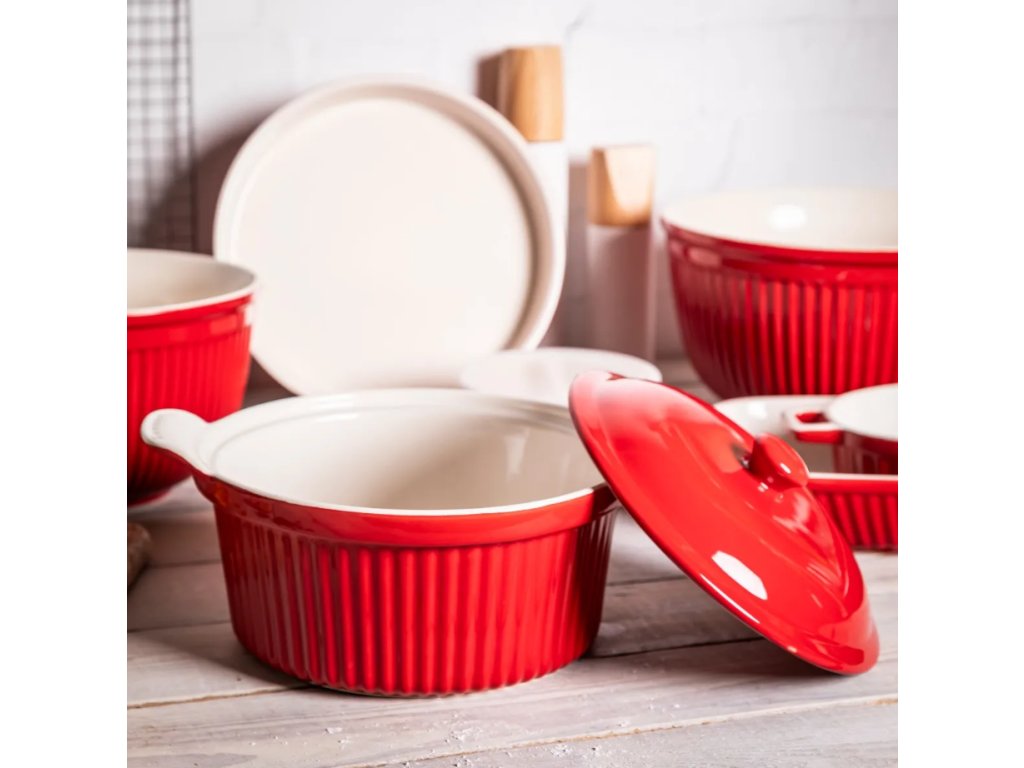 Keramické zapékací nádobí s víkem v červené barvě o objemu 2,2 litru od značky Red Chilli je skvělým pomocníkem pro přípravu a servírování různých pokrmů.