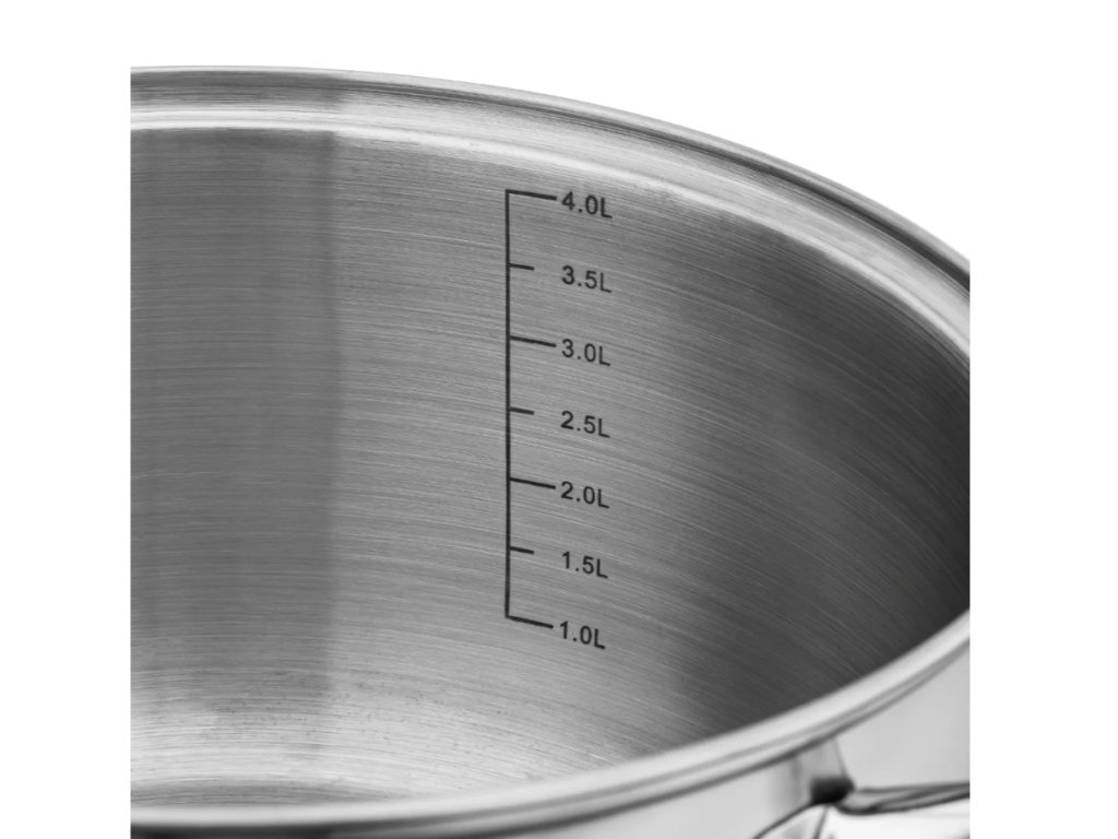 Díky objemu 4,7 litru je hrnec dostatečně prostorný pro přípravu různých pokrmů, jako jsou polévky, omáčky nebo dušená jídla. Poklop pomáhá udržovat teplo a vlhkost uvnitř, což zaručuje rovnoměrné vaření a intenzivní chuť pokrmů. Ergonomické rukojeti usnadňují manipulaci a přenášení hrnce.