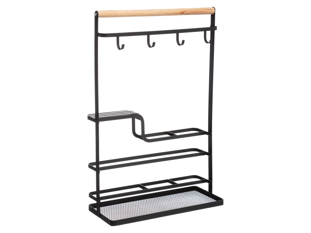Organizér je ideální pro uložení koření, lahví, dóz a dalších kuchyňských doplňků. Odolné dřevo a ocel zaručují stabilitu a pevnost, zatímco elegantní černý design se hodí do každé kuchyně.