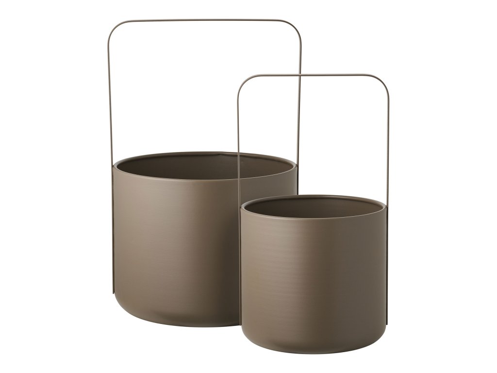 Stylová sada dvou kovových obalů na květináče v elegantní hnědé barvě je ideální volbou pro všechny milovníky rostlin a designu. Díky pevnému kovovému provedení jsou obaly odolné, stabilní a vhodné pro každodenní použití. Neutrální hnědý odstín snadno zapadne do moderního i rustikálního interiéru a krásně podtrhne zelenou barvu rostlin.
