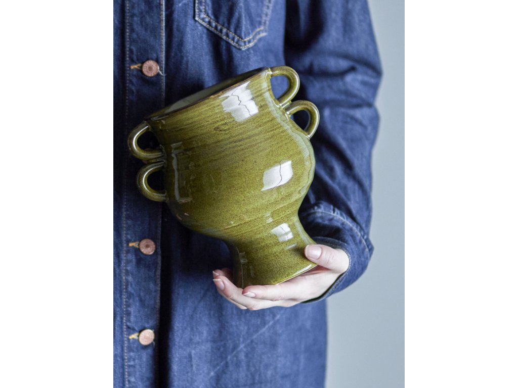 Květináč Raia ze zelené kameniny je jednoduchým a nadčasovým doplňkem vašeho domova. Jeho monochromatický design s jemnými detaily je vhodný jak jako dekorativní předmět, tak i jako nádoba pro vaše rostliny. Povaha glazury může způsobit barevné odchylky.Doplňkové parametry