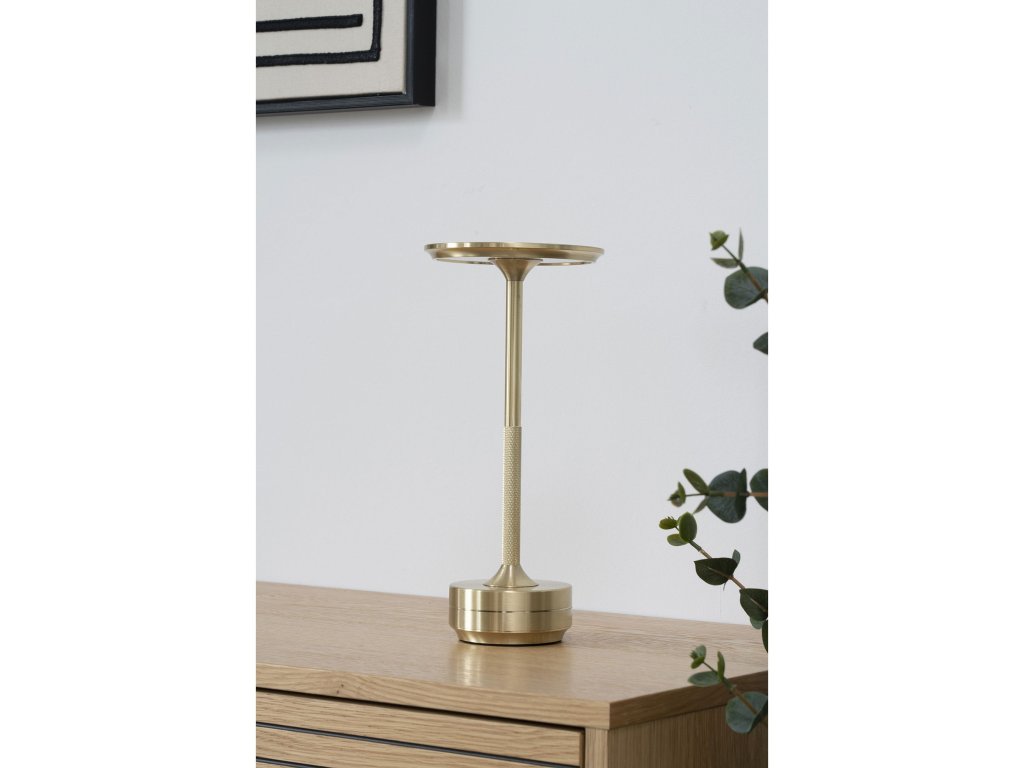 Stolní lampa Lyneham v kovovém provedení s dobíjecí baterií je elegantní řešení pro váš interiér. K dispozici ve zlaté, černé a stříbrné barvě, nabízí moderní vzhled a flexibilitu při použití. Ideální pro doplňkové osvětlení v obývacím pokoji, ložnici nebo pracovním koutku, přináší styl a funkčnost v jednom.