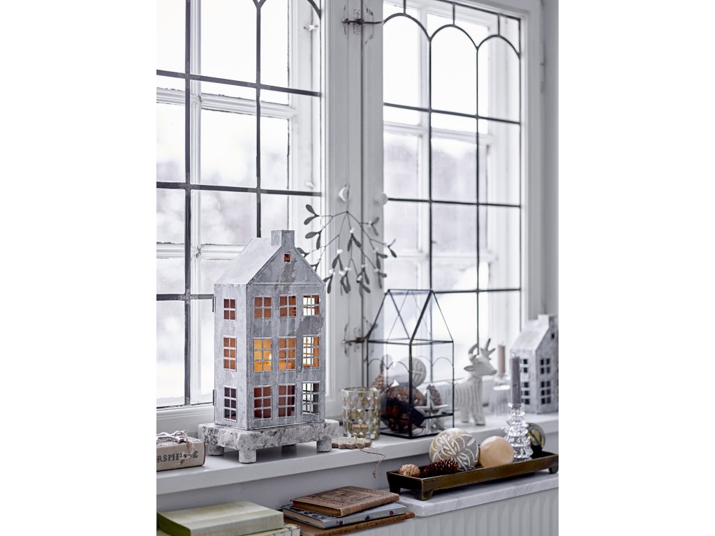 Sada dvou útulných luceren Heidrun od Bloomingville připomíná dva malé domečky. Je vyrobena z kovu v šedé barvě. Malá okénka a dvířka šíří útulnost a rozzáří temné večery. Po použití je lze skladovat v sobě.Doplňkové parametry