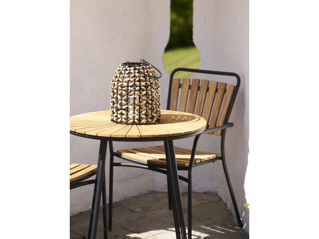 Závěsná lucerna Pinto s výškou 28 cm v přírodních a černých tónech nabízí jednoduchý a přírodní vzhled. Skvěle se hodí do stylových exteriérů nebo interiérů, přičemž vytváří jemné a teplé osvětlení při večerním posezení.