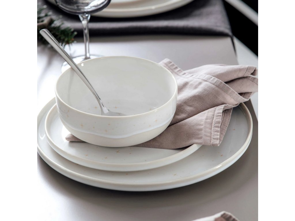 Miska z kolekce Winter Glow okouzlí unikátní efektní glazurou, která vytváří dojem jemné polevy nebo sněhové vrstvy. Zlaté hvězdy, kombinace materiálů a bohaté detaily z ní činí skutečně výjimečný dekorativní i praktický kus.