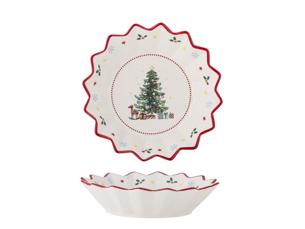 Miska Naive Bowl od Bloomingville okouzluje detailním designem vánočního stromečku a klasickými svátečními motivy. Ručně malovaný červený okraj dodává misce slavnostní nádech a elegantně zdůrazňuje vlnitý tvar. Ručně malované detaily zajišťují, že každá miska je jedinečná.Doplňkové parametry
