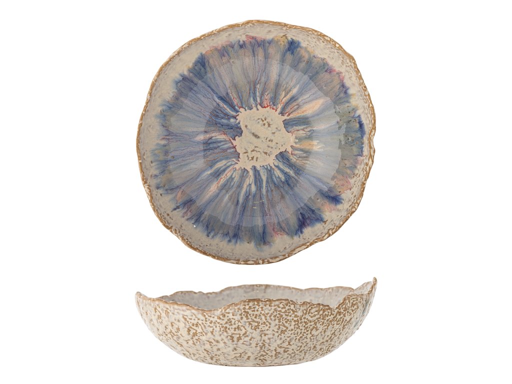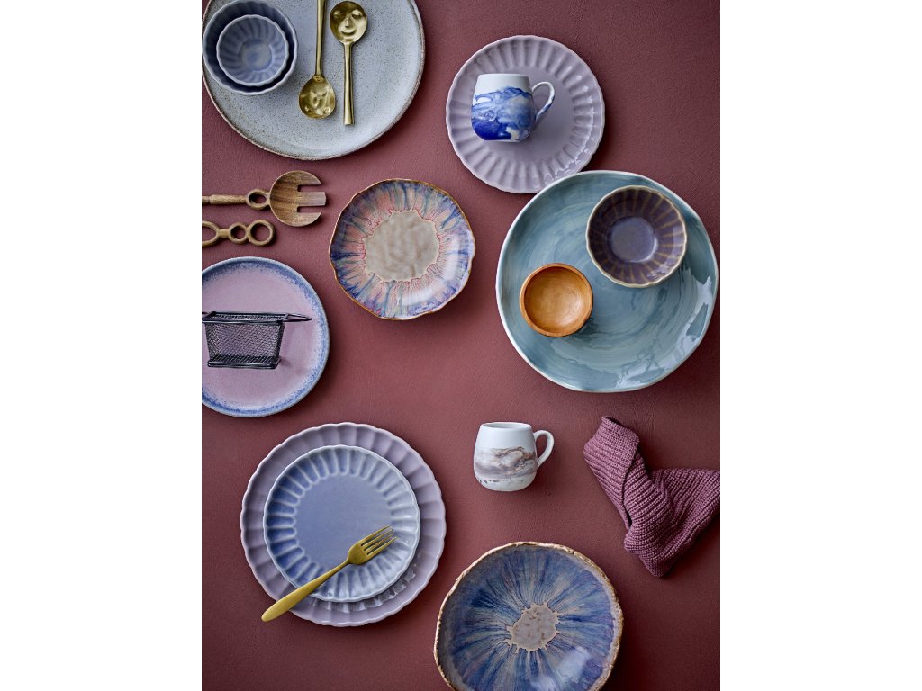 Mísa Amalia od Bloomingville představuje jemnou souhru barev mezi béžovými, fialovými a modrými odstíny, které se krásně prolínají do palety připomínající akvarel. Mísa má zaoblený tvar a lesklý povrch, díky čemuž je ideální jako součást jídelního stolu. Rustikální okraje dodávají míse charakter a zdůrazňují její jedinečný vzhled. Glazura může způsobit barevné odchylky.Doplňkové parametry