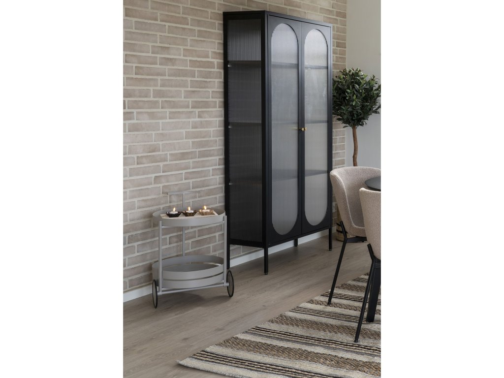 Barový vozík Beja je elegantní a kompaktní s kovovou konstrukcí v matné šedé barvě. S rozměry 40x42x61 cm disponuje dvěma policemi, které jsou ideální pro odkládání alkoholických a nealkoholických nápojů, sklenic nebo doplňků. Tento vozík je skvělým doplňkem do domácího baru, kuchyně nebo salónku, kde kombinuje styl a praktičnost s moderním designem.