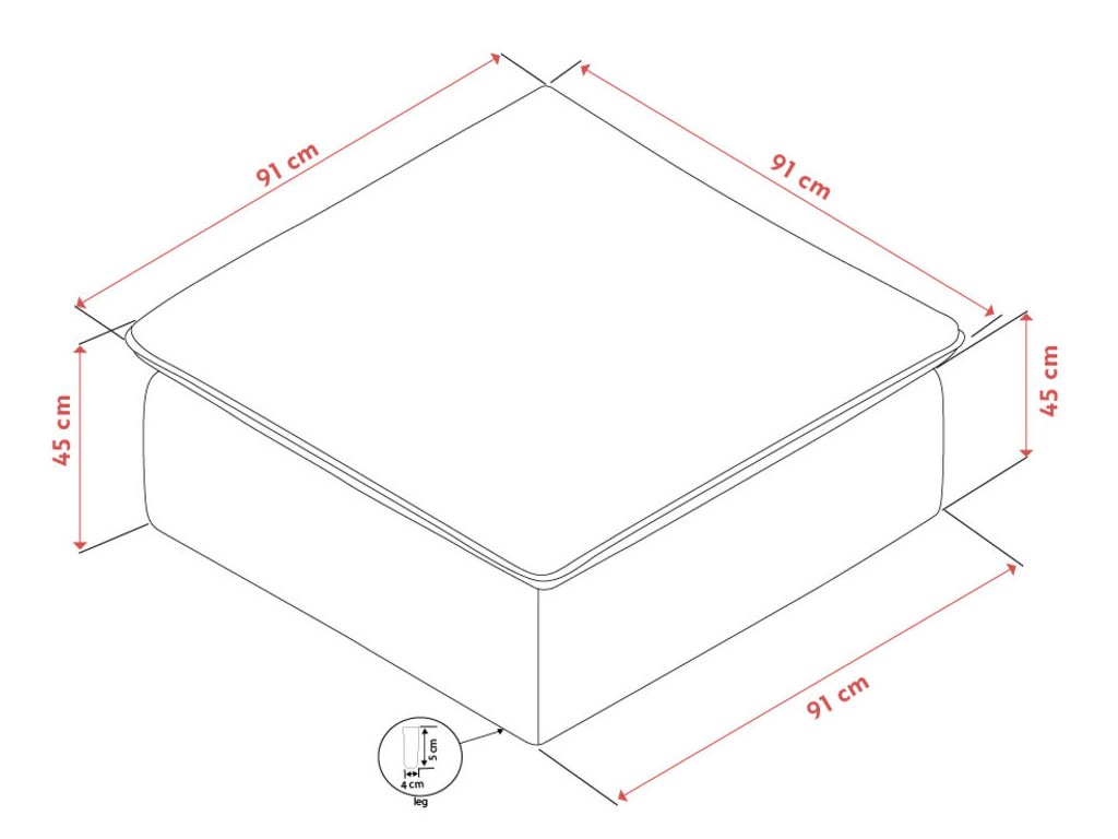 Podnožka Rawlins o rozměrech 91×91 cm je navržena jako stylový i praktický doplněk k pohovkám stejnojmenné kolekce. Její jednoduchý čtvercový tvar a čisté linie dodávají interiéru moderní eleganci, zatímco béžový odstín působí jemně a harmonicky. Díky neutrální barvě se snadno kombinuje s dalšími prvky zařízení a přispívá k útulné a vyvážené atmosféře.