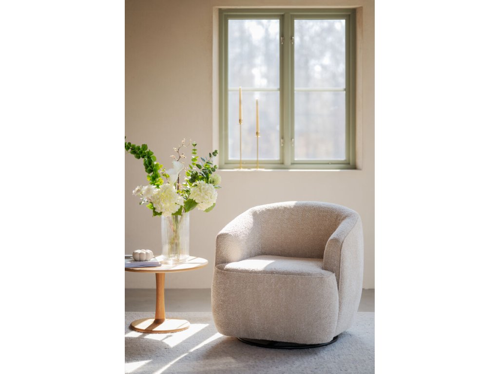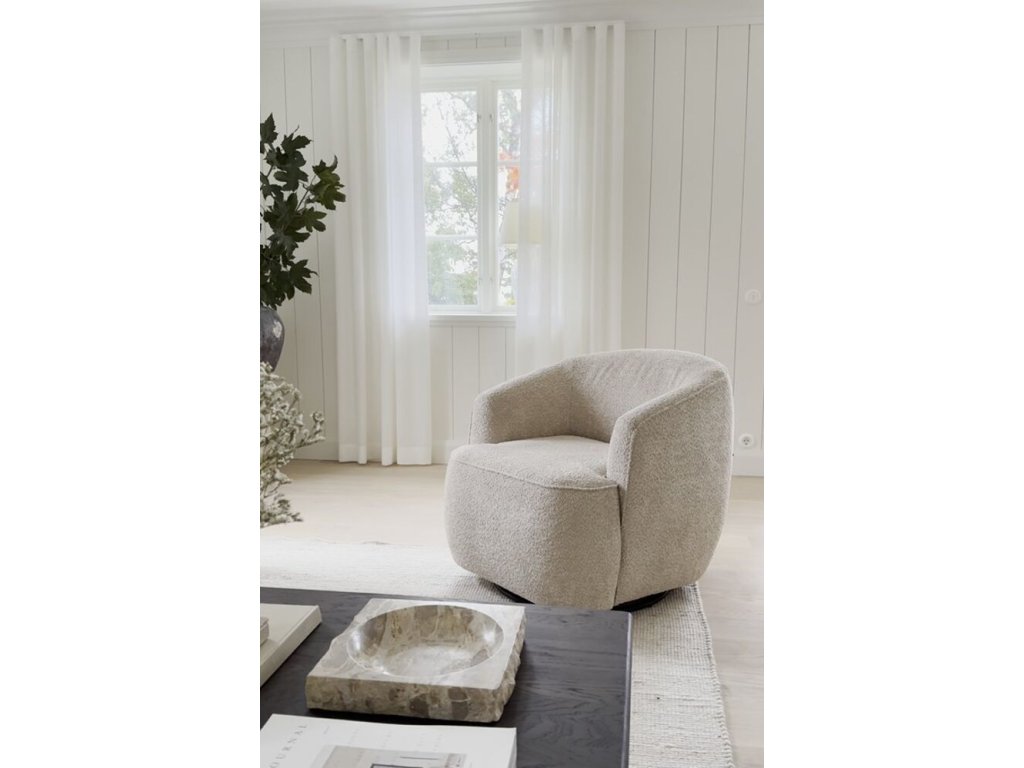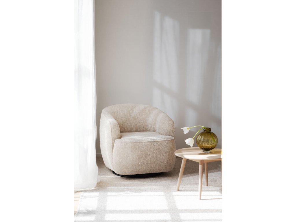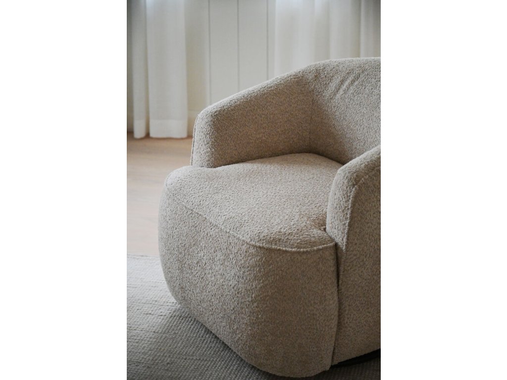 Křeslo Dermot se díky své světle béžové barvě a jemným křivkám skvěle hodí do moderních i skandinávských interiérů, kde vynikne v kombinaci se světlým dřevem, neutrálními barvami a minimalistickými doplňky. Díky elegantnímu čalounění a ozdobným švům zapadne také do klasicky laděného obývacího pokoje či útulného čtecího koutku.