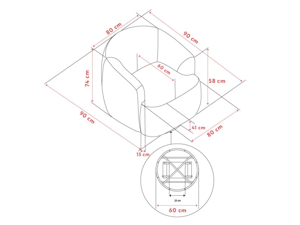 Sedák je vyplněn tvrdou elastickou pěnou doplněnou vláknitou vatou a podpořen pružinami Nosag, což zajišťuje dlouhou životnost a komfort při sezení. Rám je vyroben z kvalitní překližky, dřevotřísky a masivního dřeva.