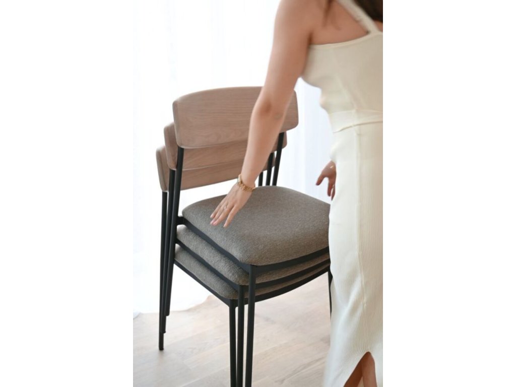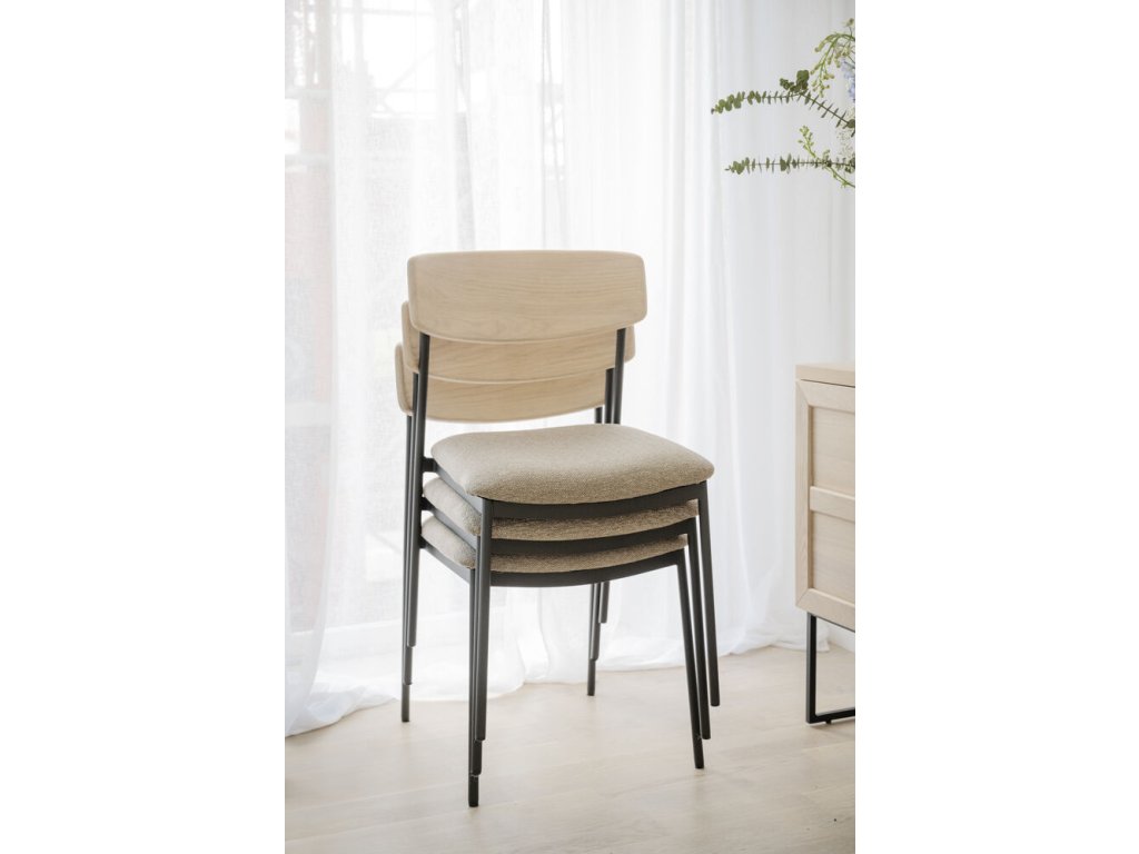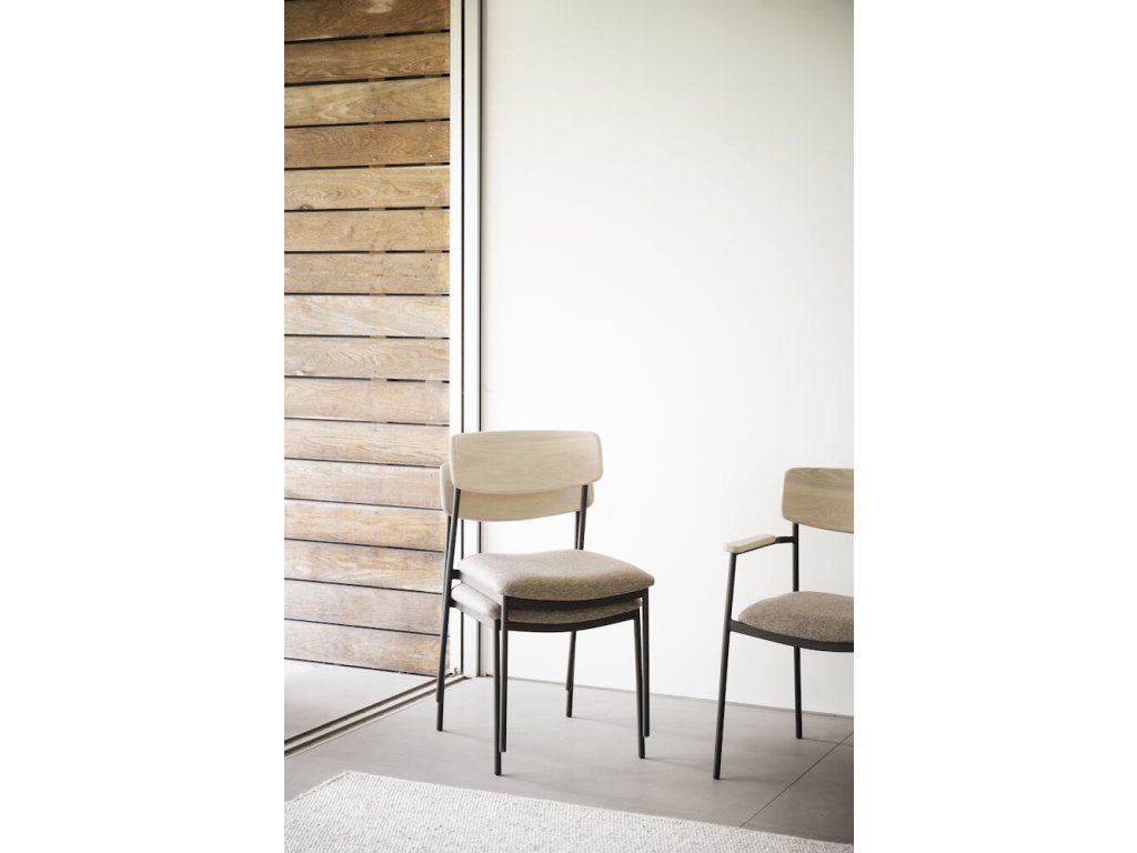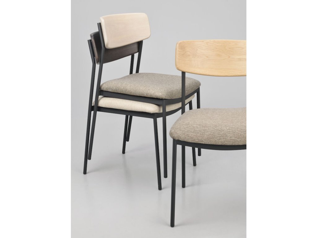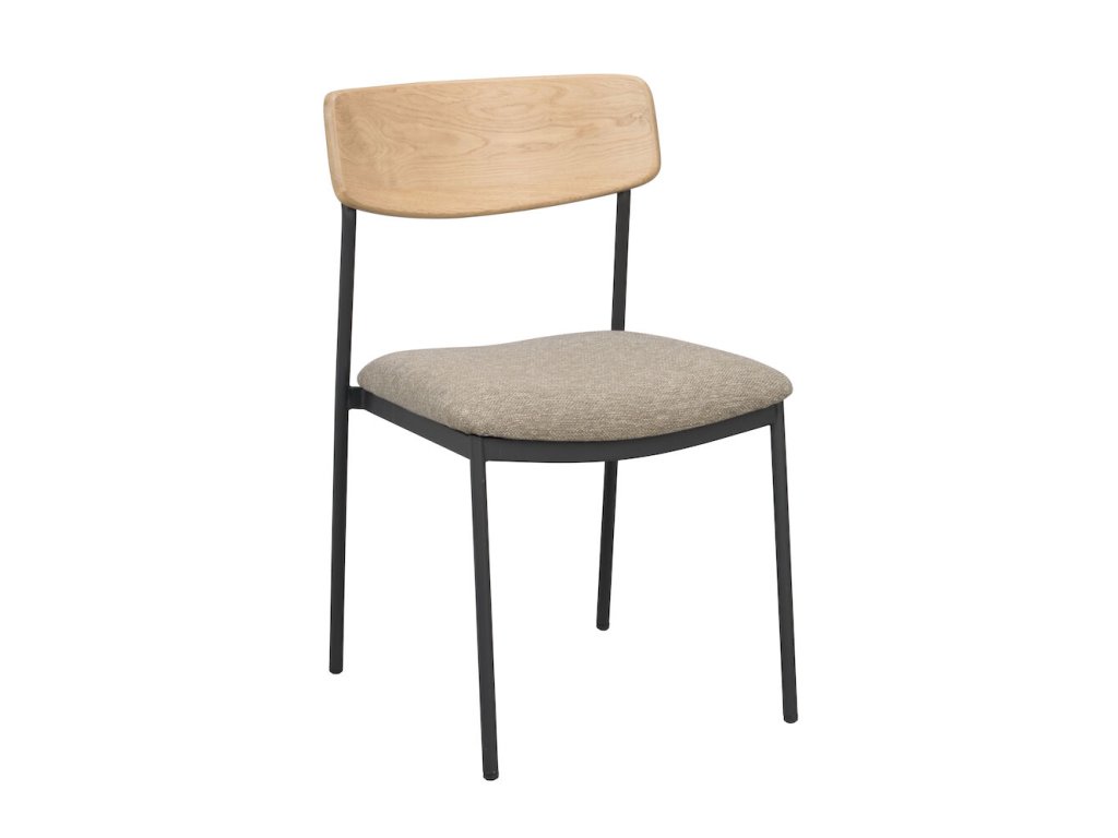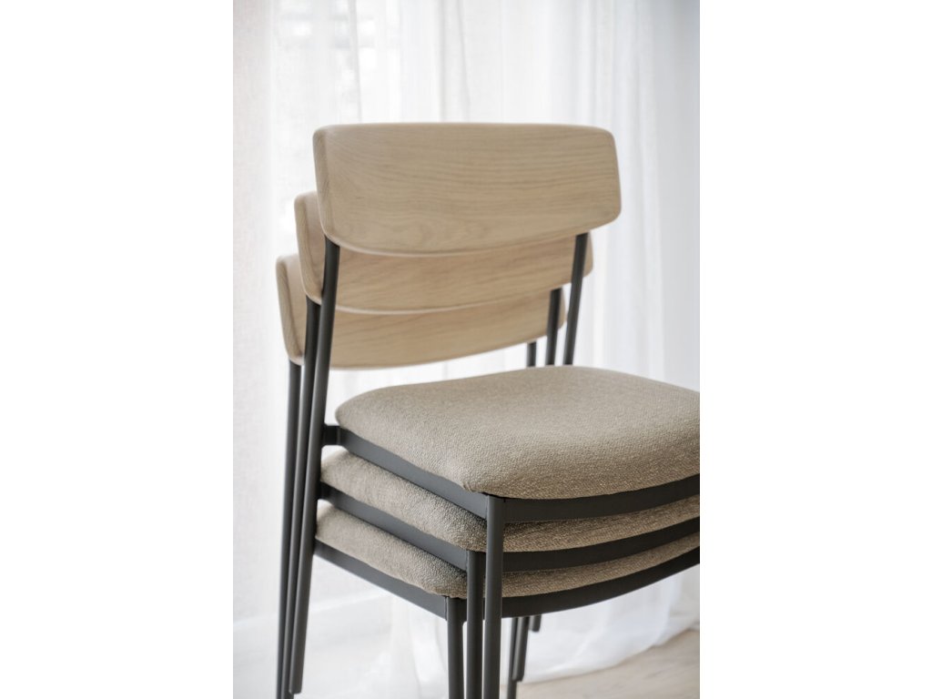 Jídelní židle z dubu a kovu, čalouněné, stohovatelná, Maymont