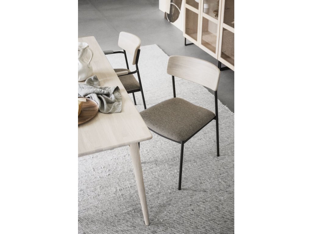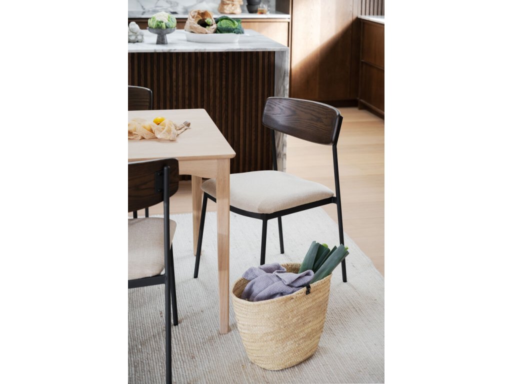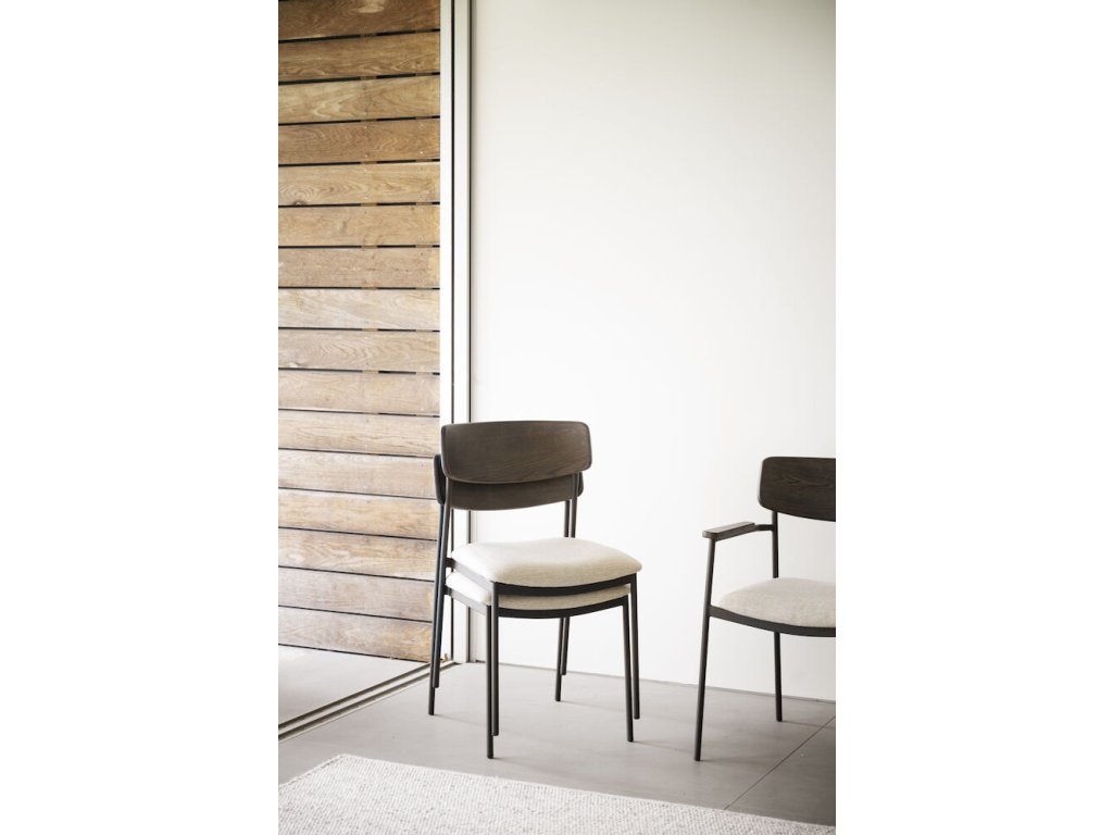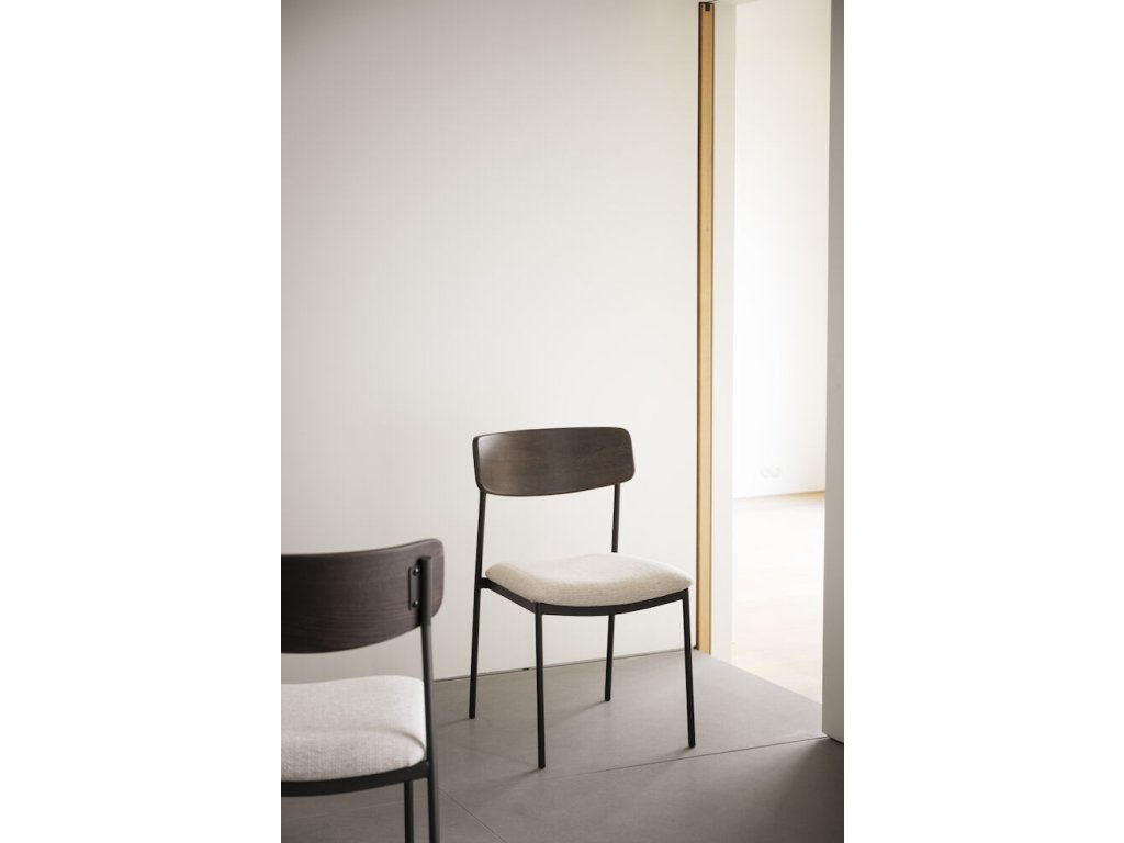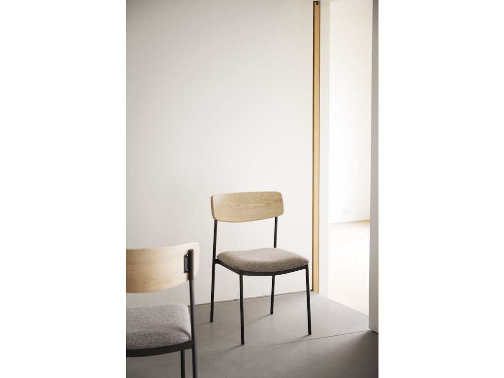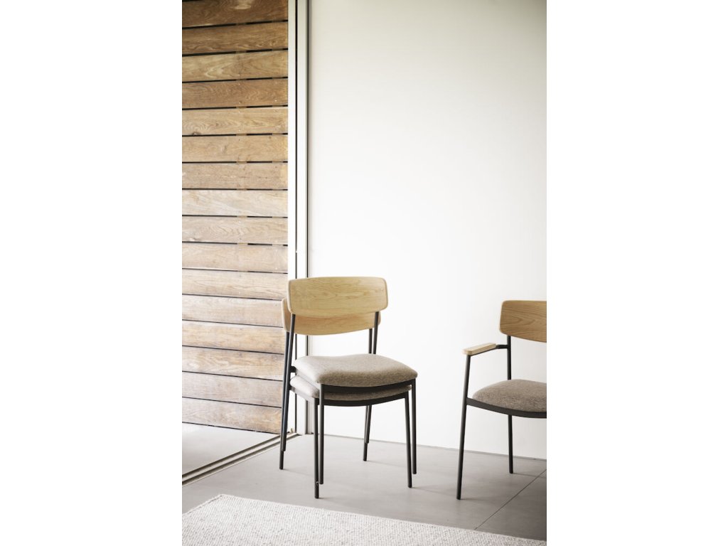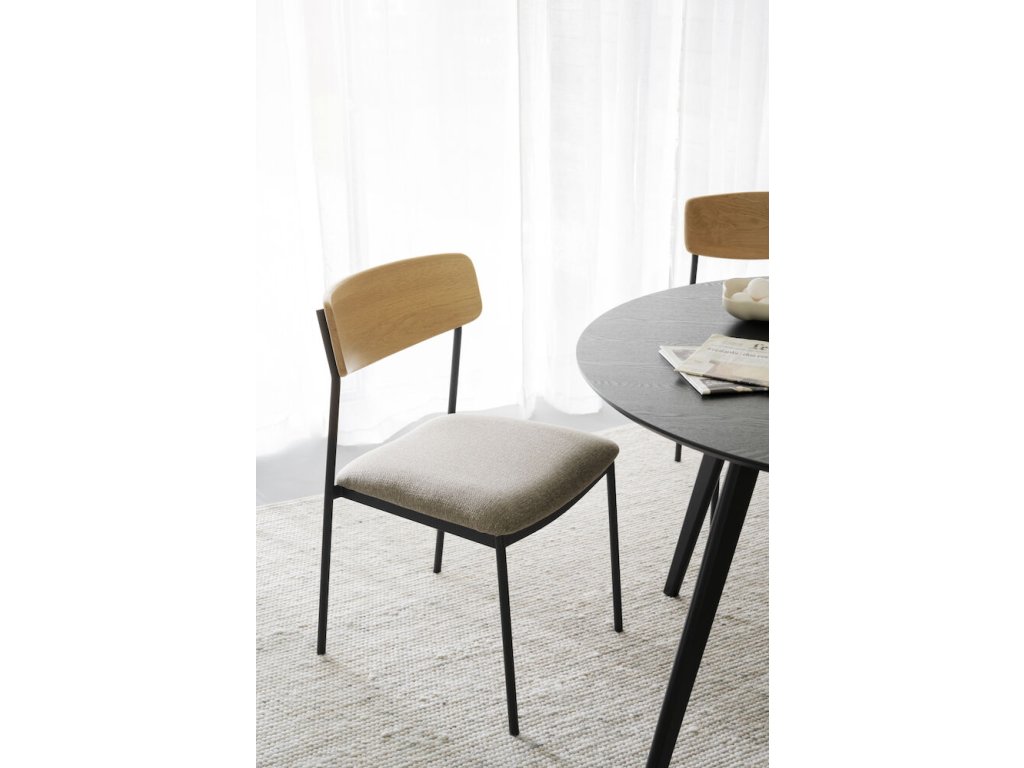 Jídelní židle z dubu a kovu, čalouněné, stohovatelná, Maymont