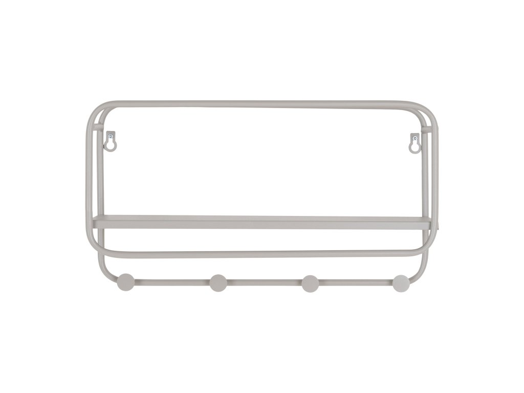 Nástěnný věšák s poličkou, kov, šedá, 45x15x25 cm, Feira