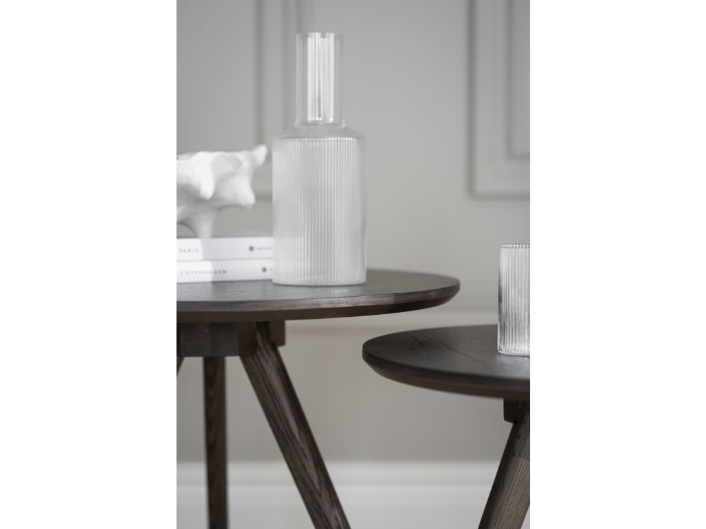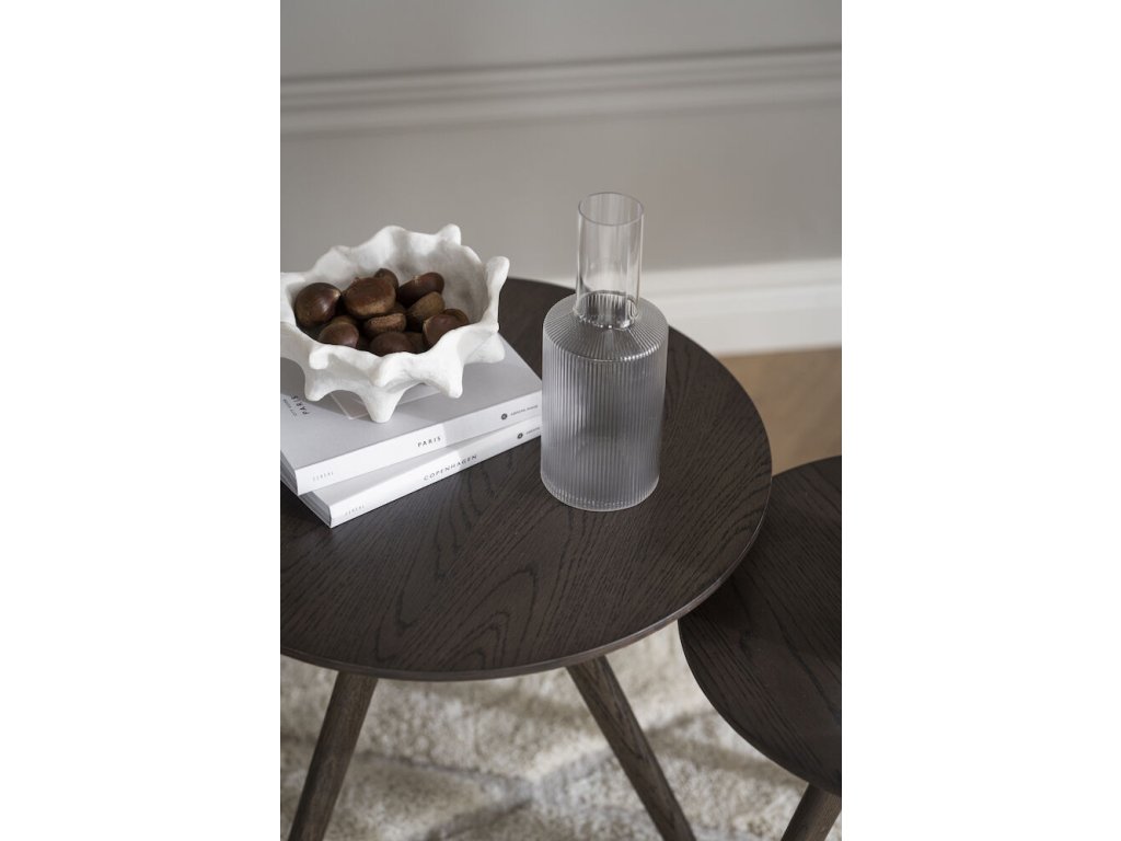 Sada stolků Yumi s mírně odhalenými nohami v nadčasovém skandinávském designu, který vydrží rok co rok. Desky stolu z hnědé lakované dubové dýhy. Velký stůl; Ø 50 cm, výška 45 cm, malý stůl; Ø 40 cm, výška 40 cm. Nebojte se kombinovat s dalším nábytkem ze série Yumi.