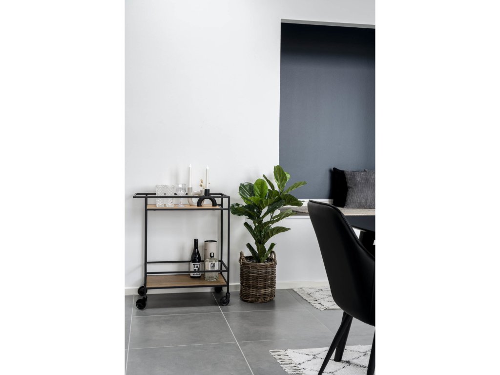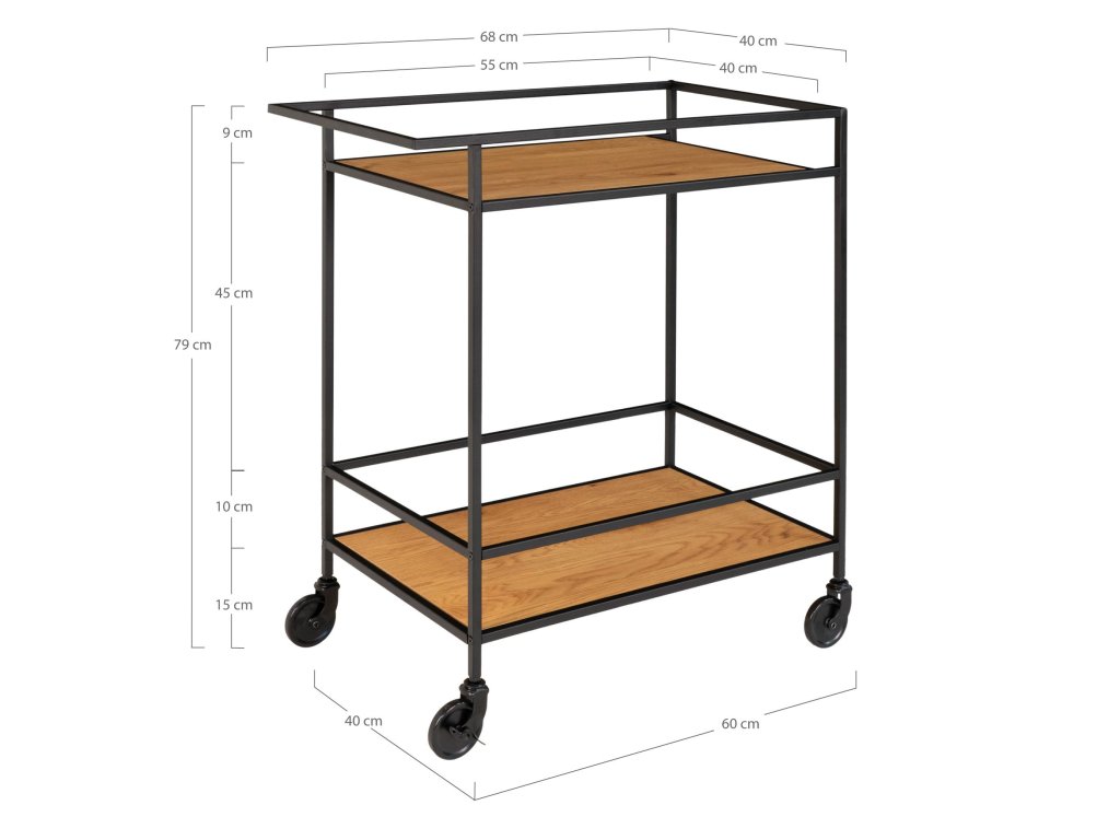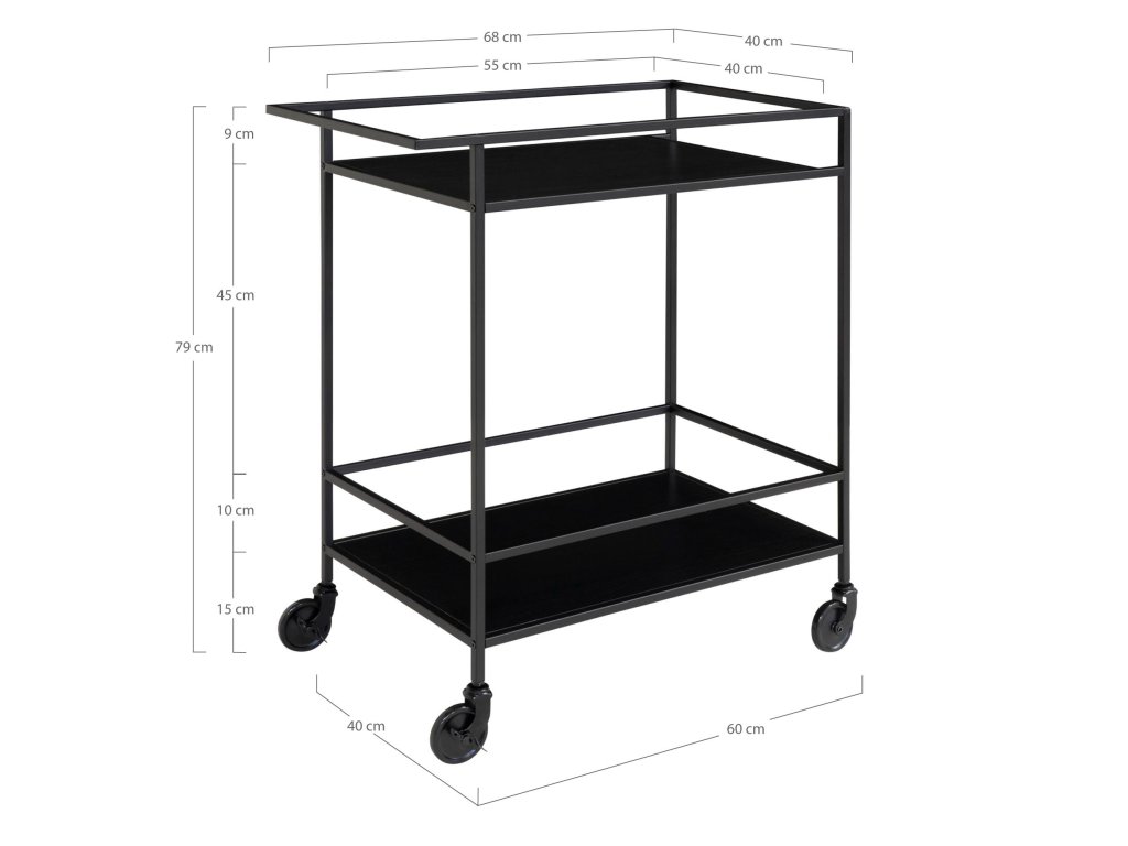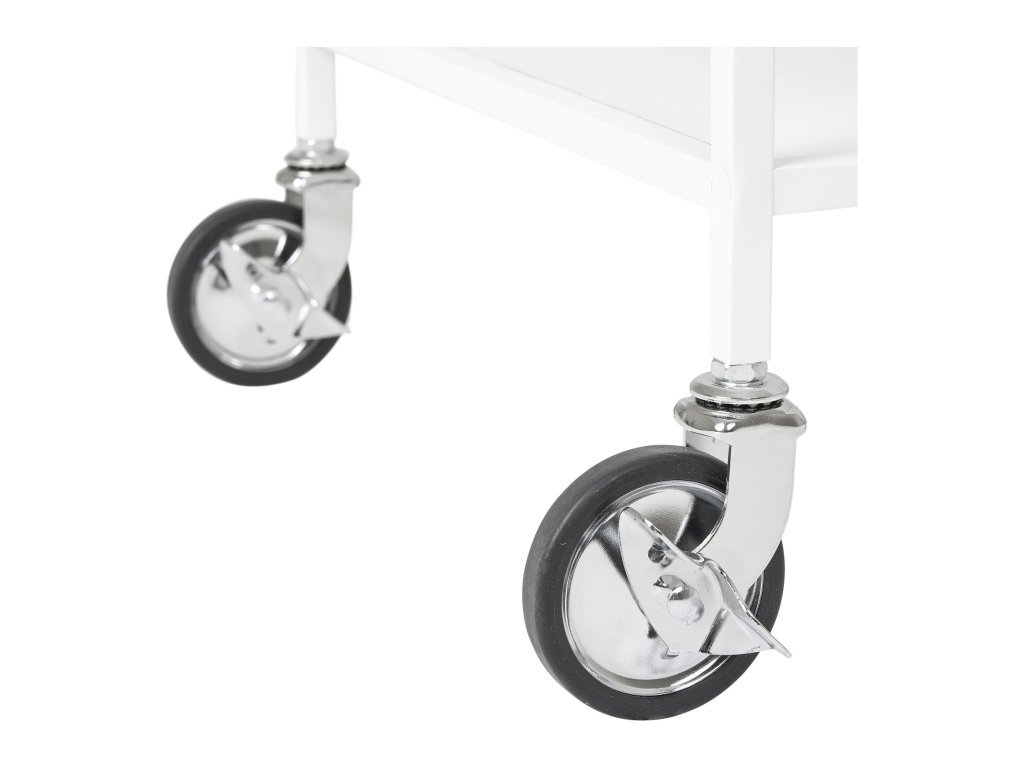 Servírovací stolek Vita na kolečkách je praktický a flexibilní kus nábytku s rozměry 40x68 cm. Je vybaven dvěma pevnými policemi, které poskytují dostatek prostoru pro nápoje, talíře nebo jiné předměty. Díky kolečkům lze snadno přesouvat podle potřeby, což z něj činí ideální doplněk do kuchyně, obývacího nebo jídelního prostoru. Moderní design a funkčnost zajišťují, že se hodí do různých typů interiérů a usnadňují každodenní použití.