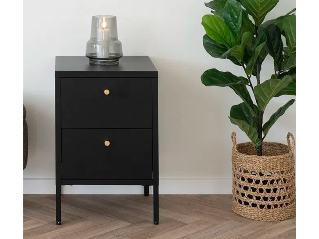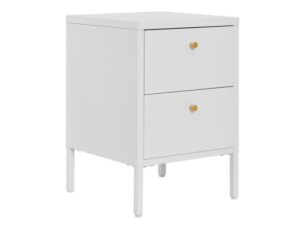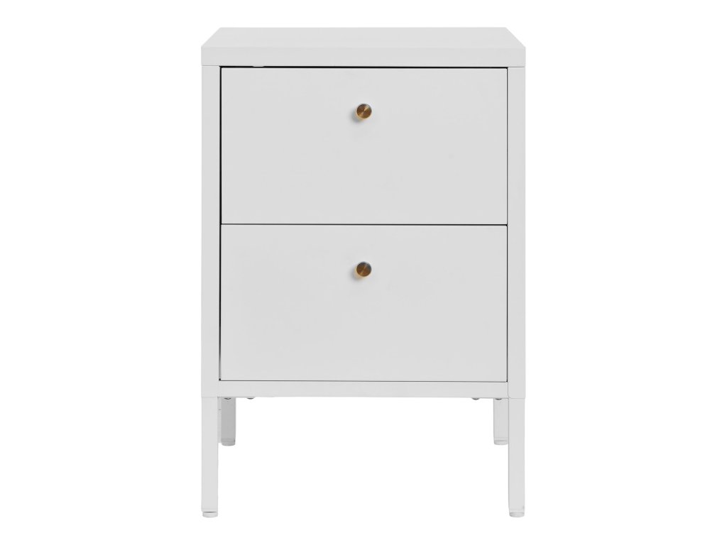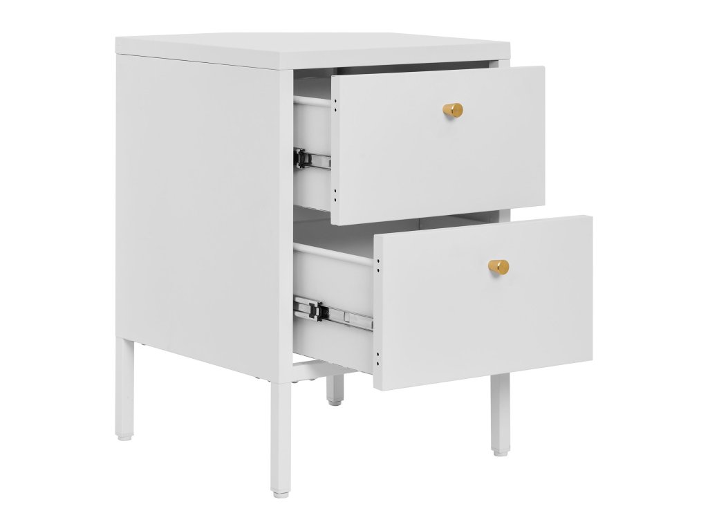 Moderní kovový noční stolek v bílé a černé barvě Dalby nabízí stylové a odolné řešení pro váš pokoj. Kombinace kovových prvků zajišťuje pevnost a dlouhou životnost, zatímco elegantní design se snadno hodí do různých interiérů. Ideální jako doplněk vedle postele, poskytuje místo na lampičku, knihy nebo drobnosti a dodává prostoru industriální nádech.