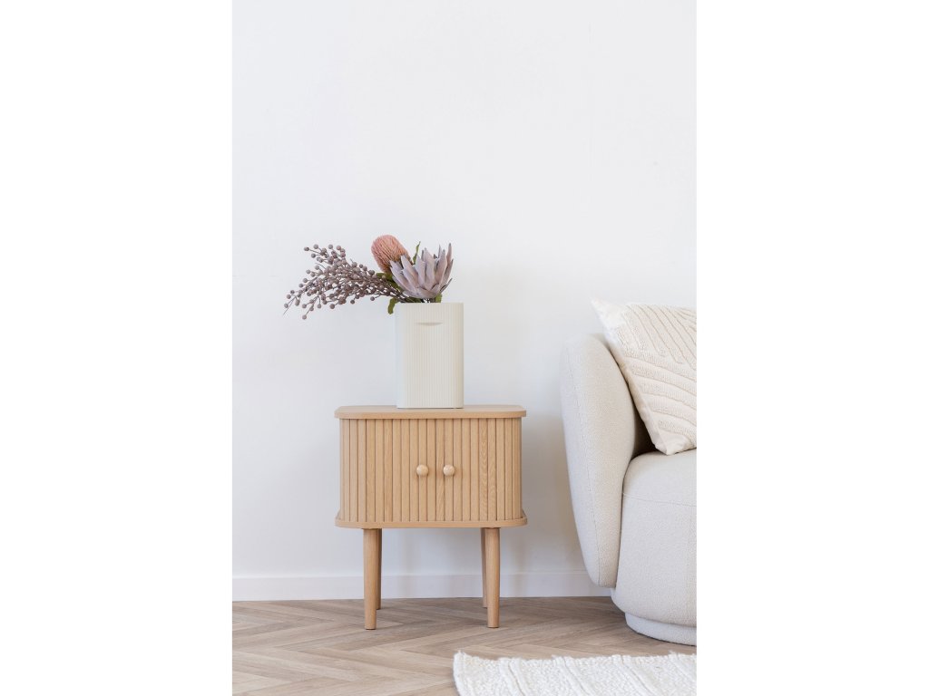Stylový noční stolek v přírodním provedení s rozměry 45×50 cm Nikko nabízí praktické a elegantní řešení pro váš pokoj. Přirozený design a kvalitní materiál dodají prostoru teplo a útulnost. Ideální jako doplněk k posteli, kde poslouží jako funkční prostor pro lampičku, knihy nebo další drobnosti.