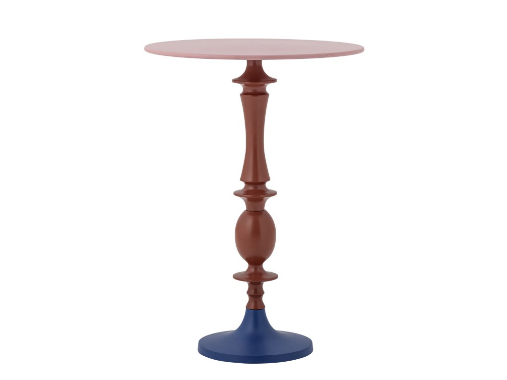 Odkládací stolek Annan od Bloomingville je vyroben z kovu a má sochařskou základnu v tmavě červené barvě, která krásně kontrastuje se světle růžovou deskou stolu a modrou nohou. Jeho štíhlá silueta a hravá barevná kombinace dodávají stolku umělecký a poutavý vzhled – perfektní jako dekorativní prvek v jakémkoli interiéru.Doplňkové parametry