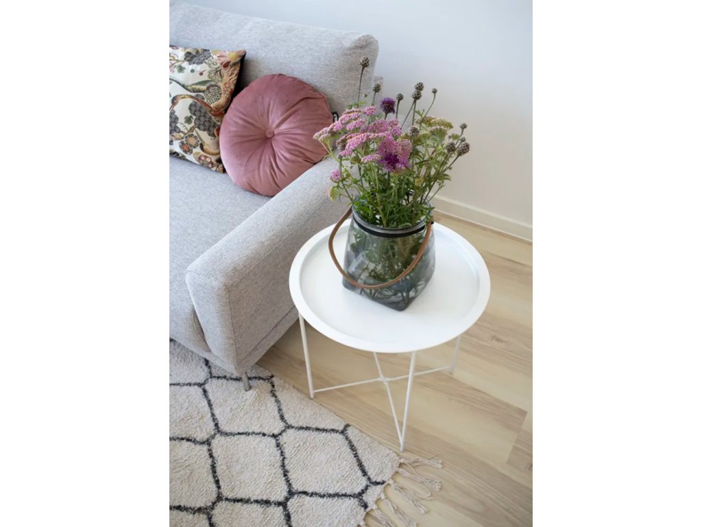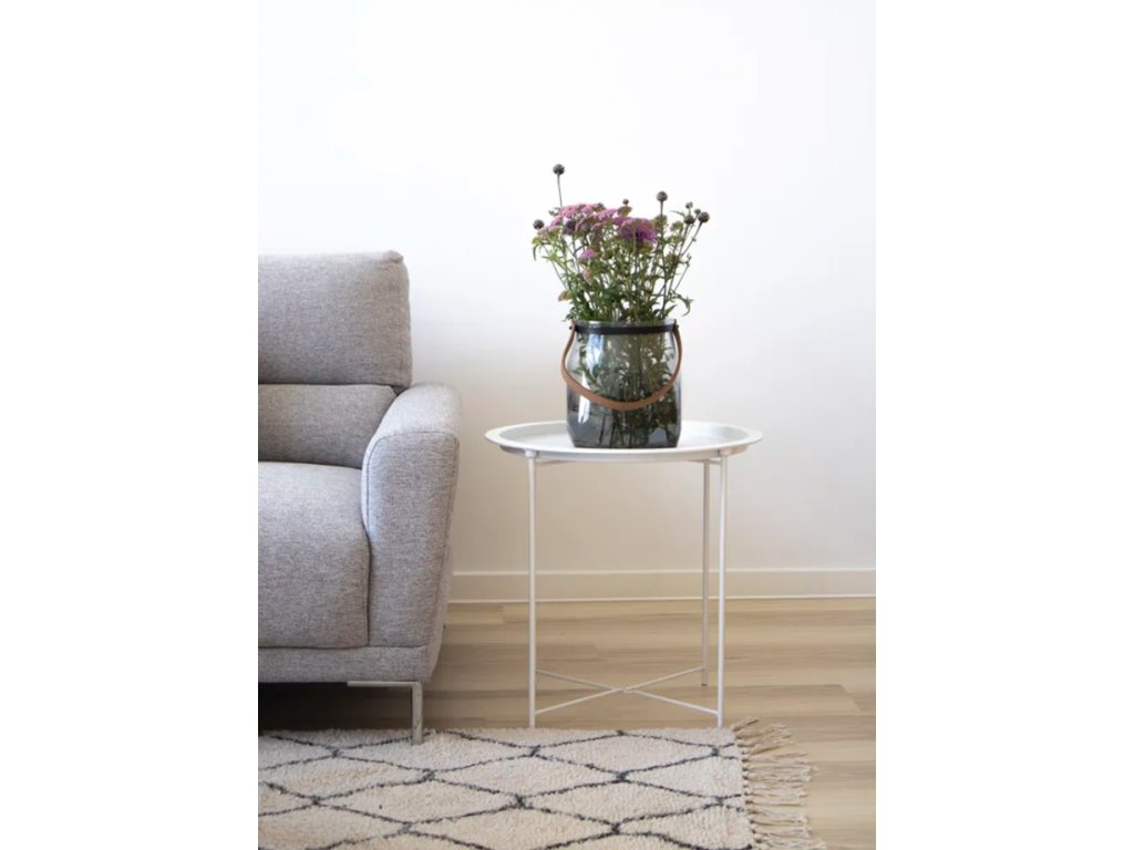 Stylový a praktický odkládací stolek, který skvěle doplní jakýkoli interiér. Díky jednoduchému designu s kovovou konstrukcí a kulatou deskou v černé a bílé barvě je tento stolek ideální jako odkládací plocha na lampu, dekorace nebo nápoje v obývacím pokoji, ložnici nebo předsíni.