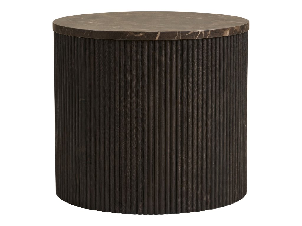 Odkládací stolek, imitace mramoru, tmavě hnědá, ø45x40 cm, Rota