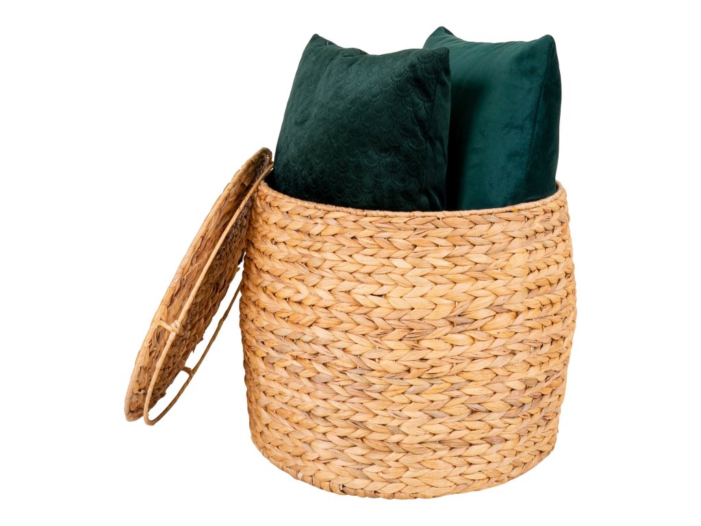 Odkládací stolek Delia s úložným prostorema je stylovým a funkčním prvkem s praktickým úložným prostorem. Vyrobený z vodního hyacintu, který dodává interiéru přírodní a organický vzhled, má průměr 43 cm a výšku 34 cm. Tento stolek je ideální například na umístění vedle pohovky nebo postele, kde poskytne místo na knihy, časopisy nebo menší dekorace. Jeho přírodní materiál a jednoduchý design se dobře hodí do boho, skandinávského i rustikálního stylu.