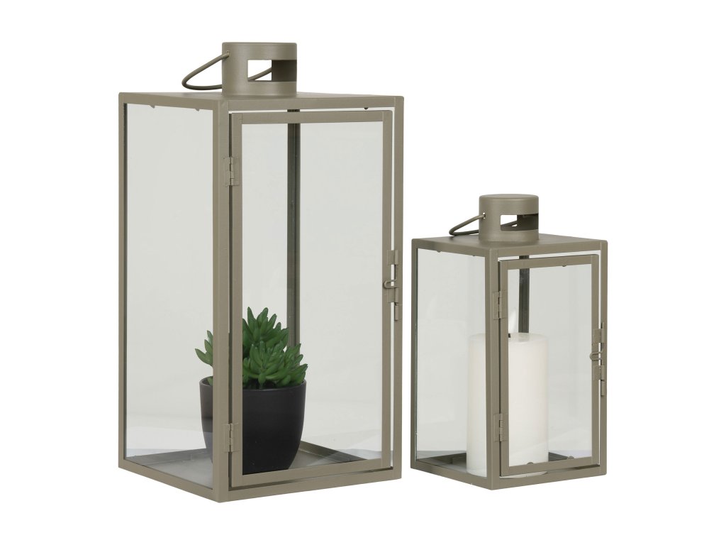 Set dvou zelených luceren Corfu vyrobených z kovu a skla je originální a přírodní doplněk, který přispěje k útulné atmosféře. Skvěle se hodí na zahradu, terasu nebo interiér, kde vytvoří jemné rozptýlené světlo a příjemnou atmosféru.