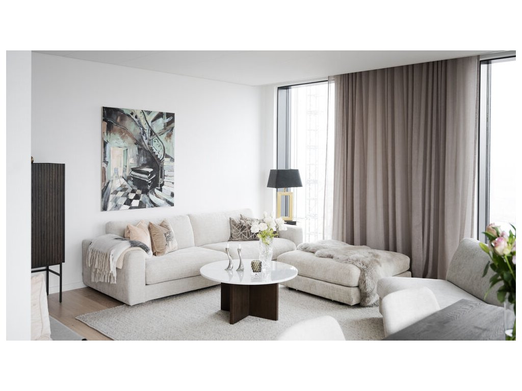 Podnožka Duncan je skvělým doplňkem ke stejnojmenné pohovce, ale díky svému univerzálnímu designu najde využití i samostatně. V elegantním krémovém potahu se stane praktickým a stylovým prvkem vašeho obývacího pokoje.