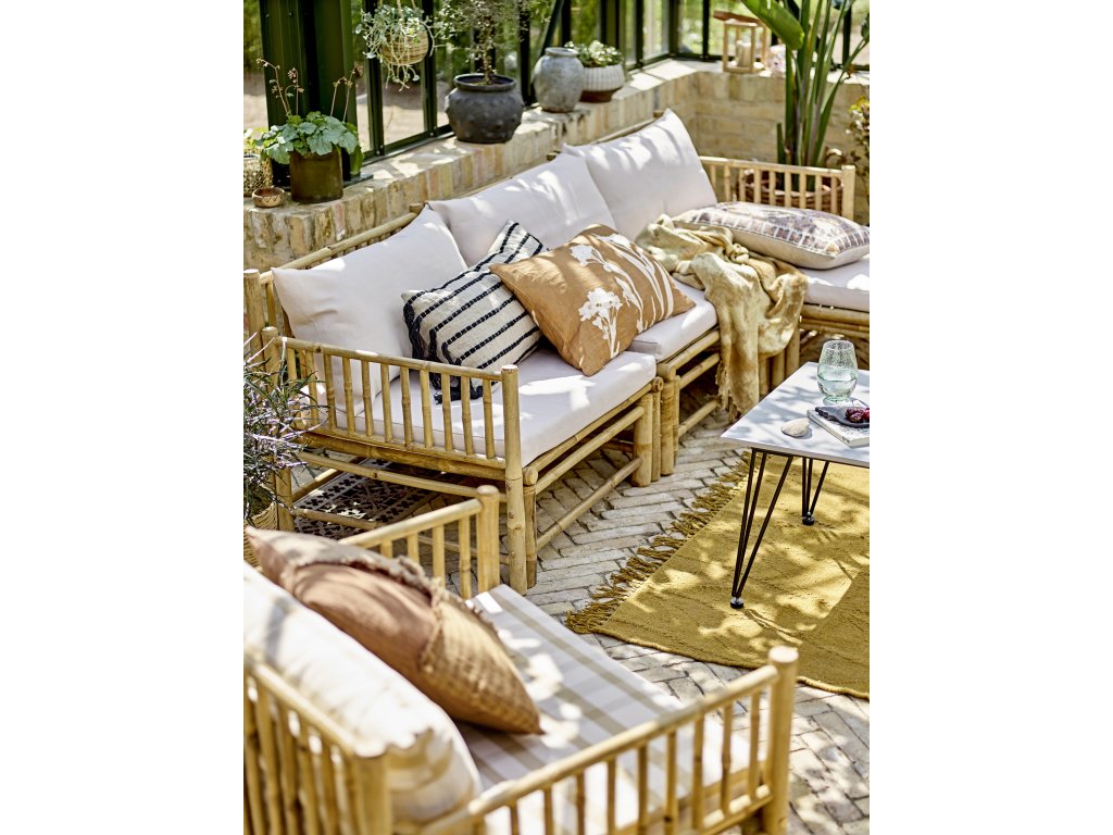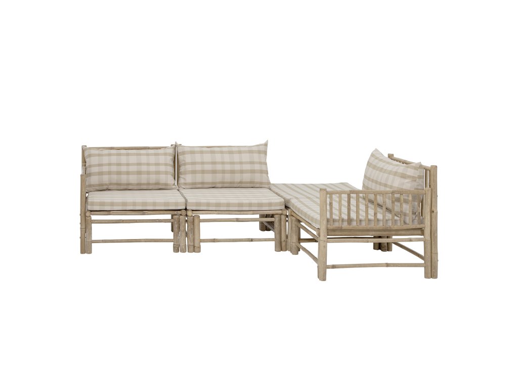 Rohová modulová pohovka Korfu od Bloomingville je součástí série Korfu, kde si můžete moduly kombinovat a vytvořit si vlastní venkovní pohovku nebo křeslo podle svých potřeb! Série je vyrobena z bambusu, aby se dosáhlo organického, útulného a domáckého pocitu přírodního materiálu. Design je krásný se severským nádechem s polštáři z polyesteru v krásných jemných barvách. Moduly se snadno montují pomocí suchého zipu na každém modulu. Nábytek Korfu je dodáván s kostkovaným i jednobarevným potahem, který lze snadno měnit dle libosti. Jste designér...Doplňkové parametry