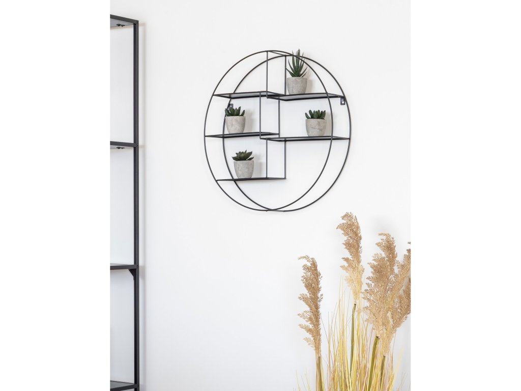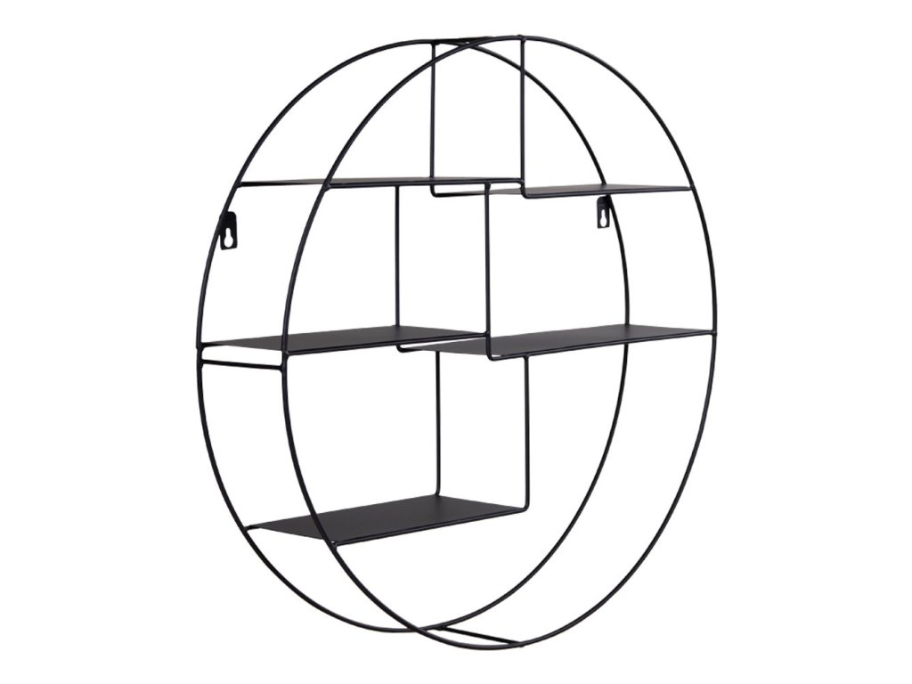 Kulatá nástěnná police, patrová, kovová, černá, 47,5 cm, Genk