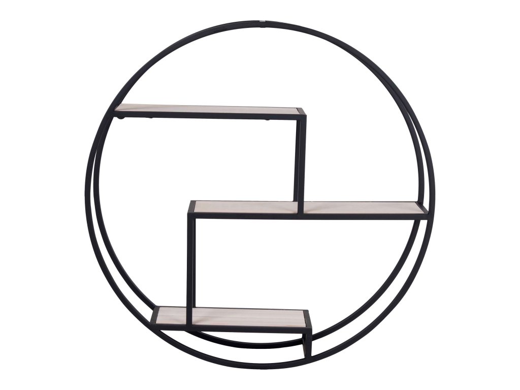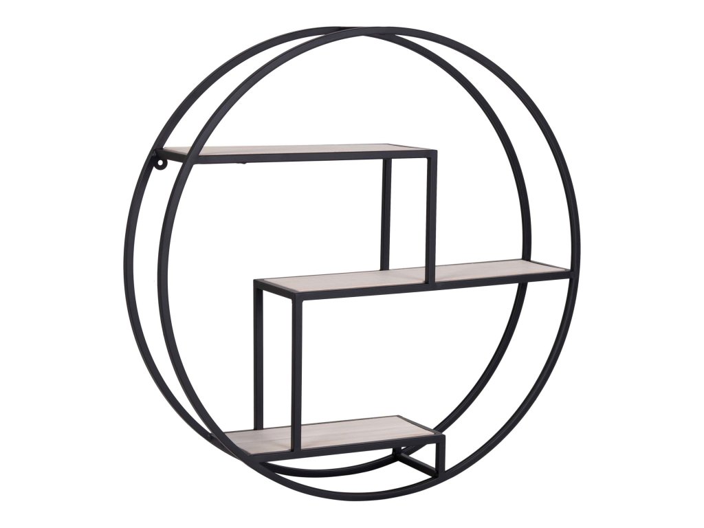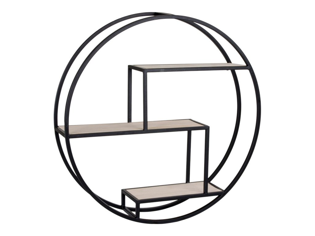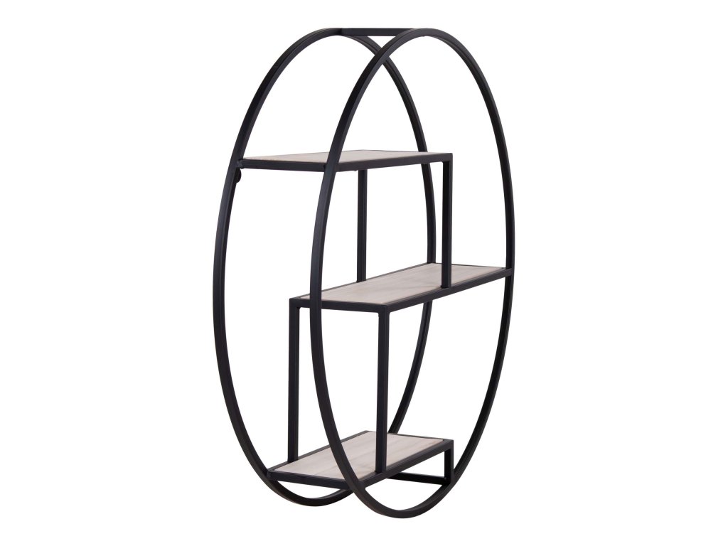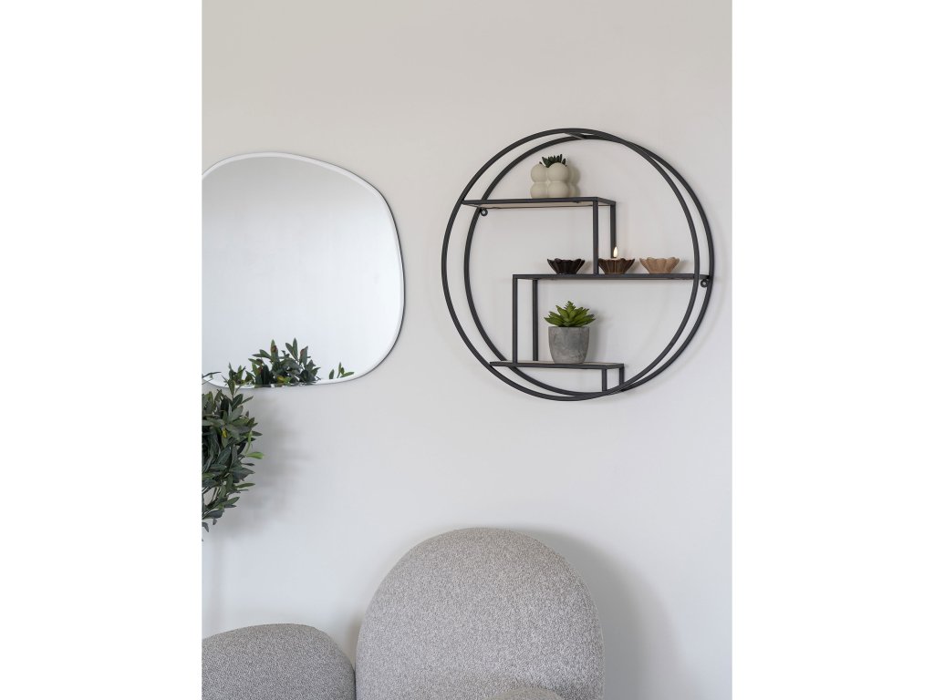 Moderní kulatá police z matně černého kovu je skvělým doplňkem každého industriálního či minimalistického interiéru. Její elegantní design s dvěma patry nabízí praktické místo pro vystavení dekorací, knih nebo drobností.