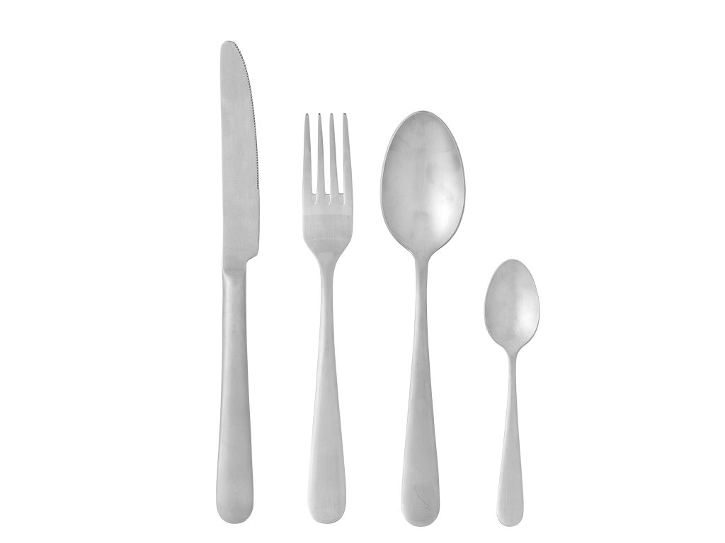 Sada příborů Karma od Bloomingville je čtyřdílná sada v jednoduchém a nadčasovém designu s matně stříbrnou povrchovou úpravou. Tato sada příborů je ideální pro doplnění vašeho jídelního stolu a její jednoduchý a elegantní design se přehozí do jakéhokoli interiéru.