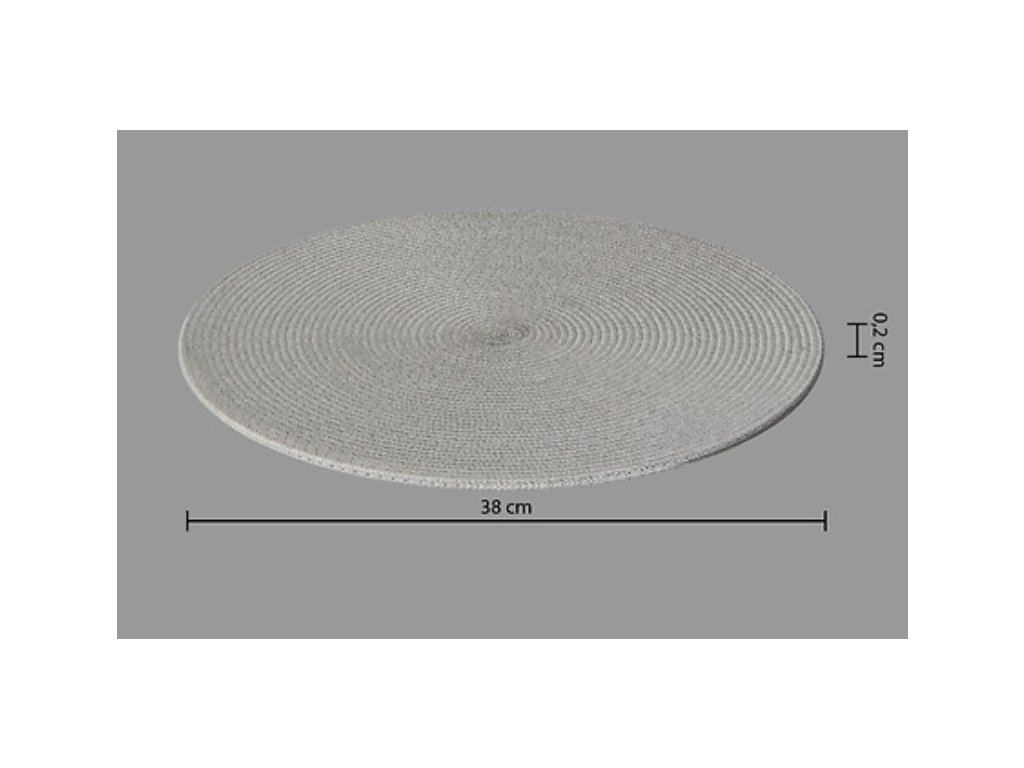 Kulaté prostírání ve světlé šedé barvě o průměru 38 cm je skvělým doplňkem pro váš jídelní stůl nebo kuchyňský prostor. Toto prostírání spojuje estetiku s praktičností, čímž vytváří příjemné prostředí při každém jídle.