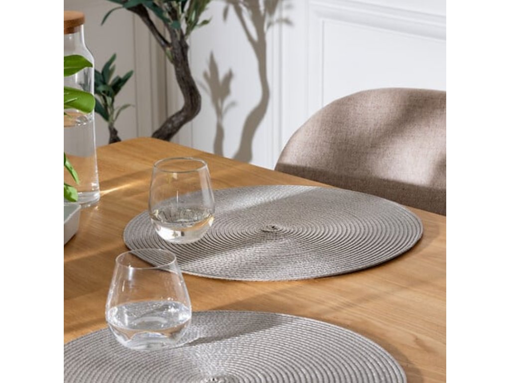 - Rozměry: Průměr 38 cm je ideální pro jednotlivé talíře, sklenice a příbory, a zároveň poskytuje dostatek prostoru pro servírovací mísy nebo dekorace.