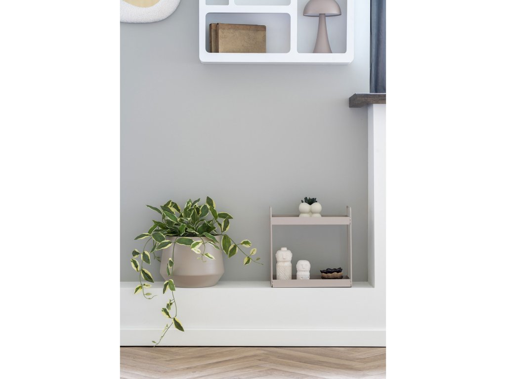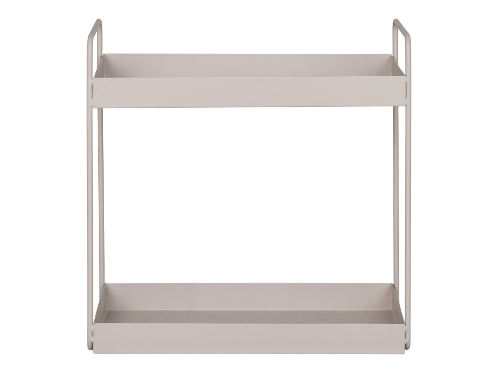 Moderní a praktická stojací police z kovu v šedé barvě, ideální pro organizaci prostoru v obývacím pokoji, koupelně nebo pracovnách. Její patrový design nabízí více úložných ploch pro dekorace, knihy nebo drobnosti, zatímco pevná konstrukce zajišťuje stabilitu a dlouhou životnost.