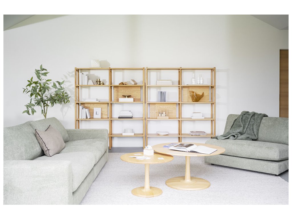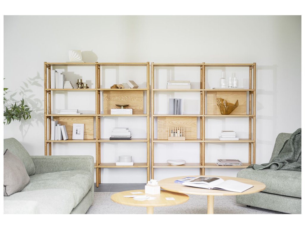 Díky svému otevřenému designu může knihovna Holton sloužit nejen jako klasická knihovna, ale také jako praktický předěl místnosti. Je dostupná i v nižší variantě, což umožňuje snadné sladění v různých typech interiérů.