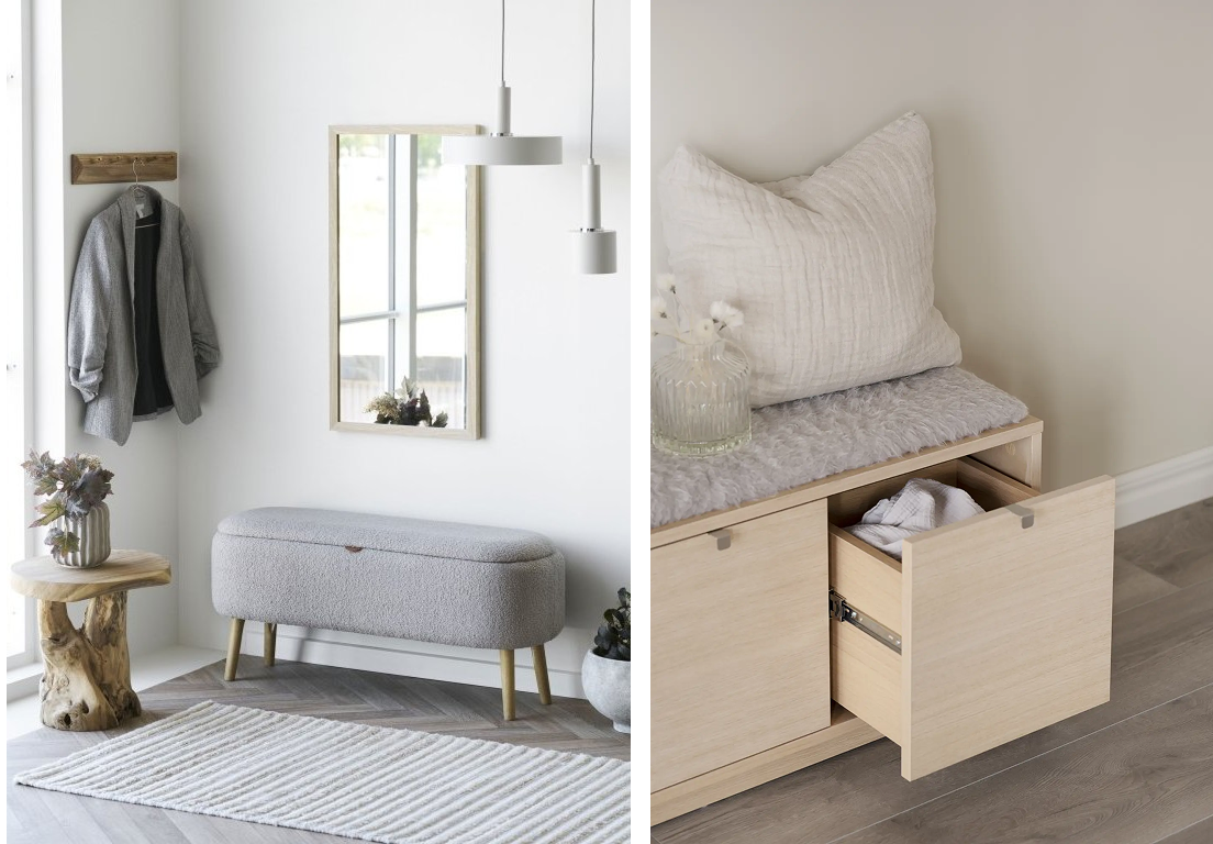 Lavice s úložným prostorem, botník a věšáky udrží věci po ruce, ale mimo dohled.