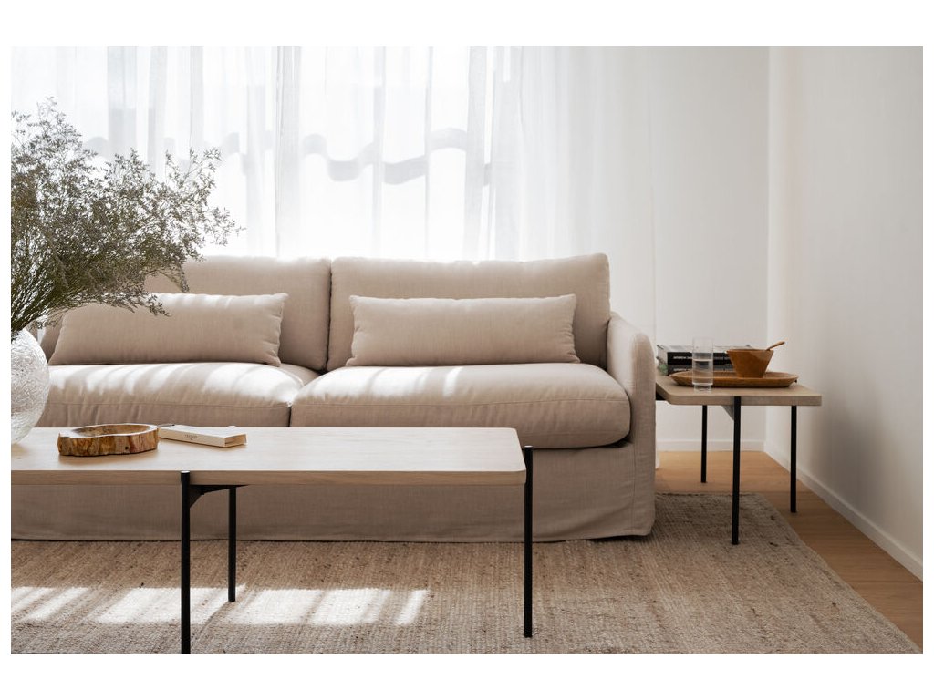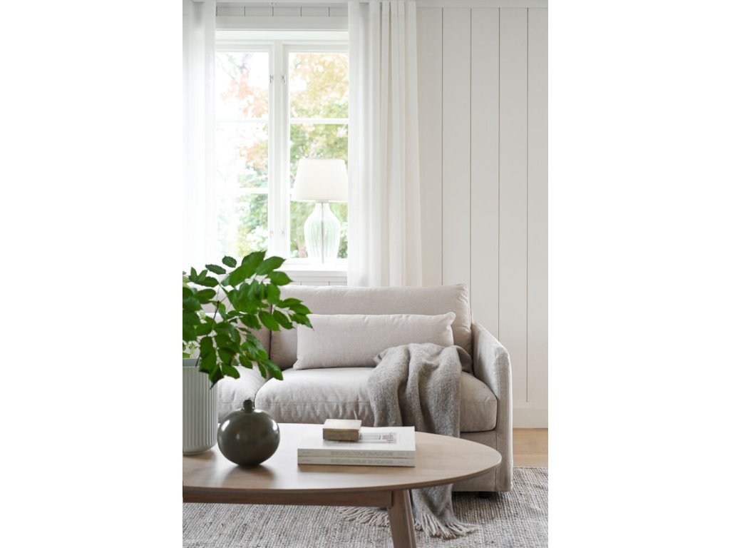 Peyton je koncipována tak, aby nabídla komfort pro tři osoby, aniž by působila robustně. Díky své délce je vhodná i do menších místností, kde je potřeba zachovat prostorovou lehkost. Elegantní vzhled, neutrální barva a nadčasový charakter činí z pohovky Peyton univerzální kus nábytku, který se stane estetickým i funkčním středobodem obývacího pokoje.