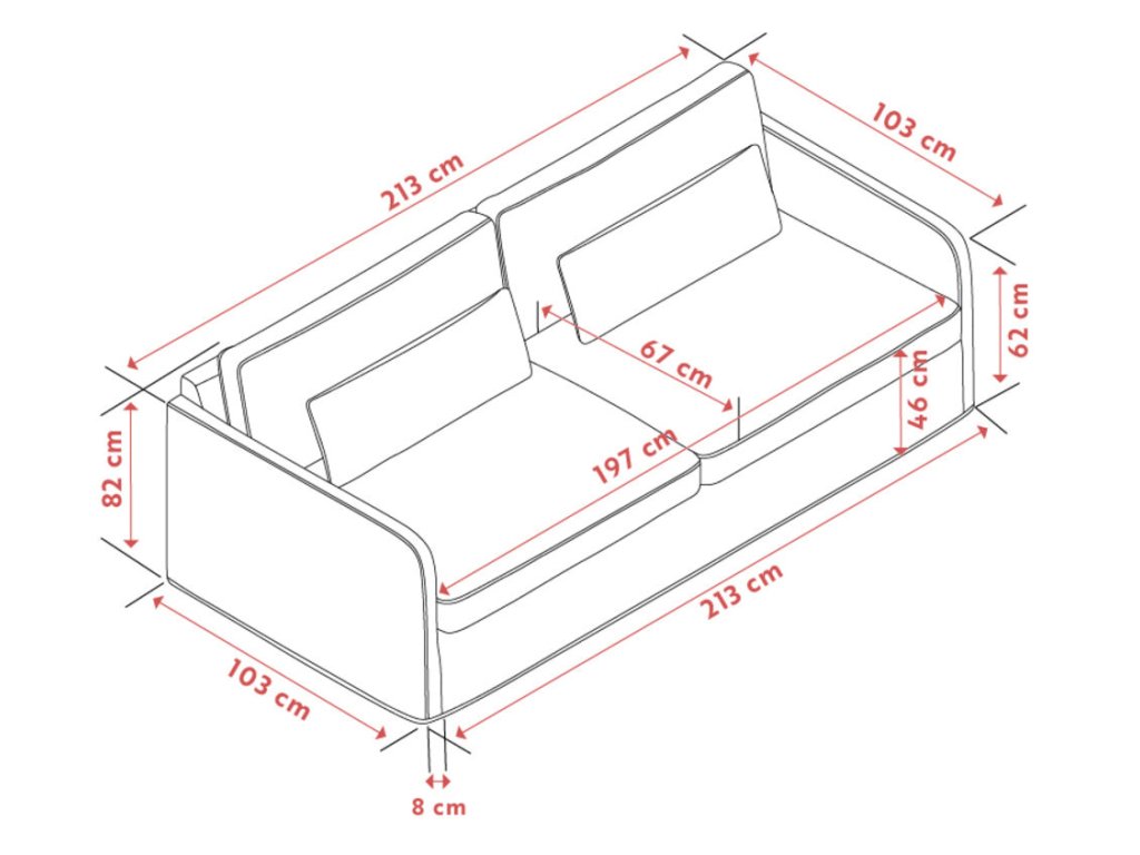 Potahová látka s jemnou strukturou je příjemná na dotek a vysoce odolná vůči každodennímu používání, takže si pohovka dlouhodobě zachovává svůj půvabný vzhled. Kvalitní konstrukce a pečlivé čalounické zpracování zajišťují stabilitu a dlouhou životnost. Sedáky jsou pohodlně hluboké, dostatečně měkké a doplněné ergonomickými opěrkami, které poskytují komfort při sezení i delším odpočinku.