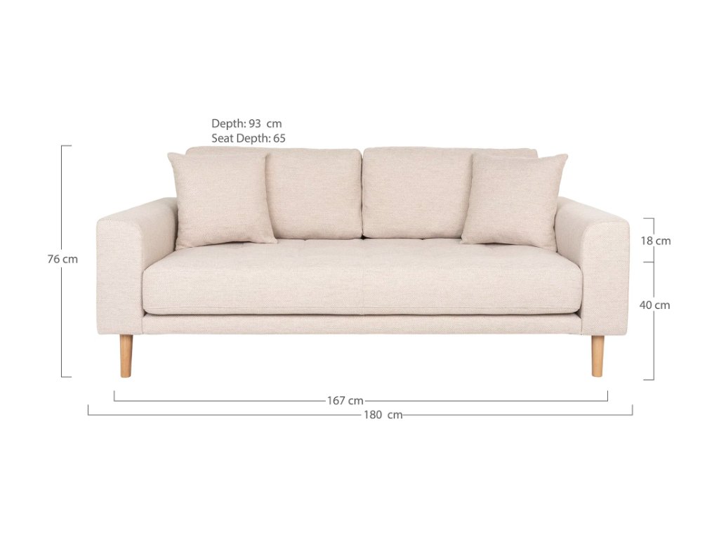 Pohovka Lido v béžovém provedení je elegantním a kompaktním řešením, které kombinuje pohodlí a nadčasový design. S délkou 180 cm je ideální i do menších prostor, kde nabízí dostatek místa pro odpočinek a relax. Béžové čalounění působí jemně, harmonicky a přináší do prostoru světlý a uklidňující tón.