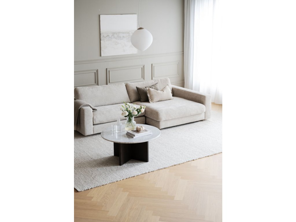 Praktická lenoška na pravé straně nabízí prostor pro relaxaci – ideální pro odpočinek s knihou, sledování filmu nebo víkendové lenošení. Pohovka poskytuje komfortní sezení pro celou rodinu a zároveň působí vzdušně díky čistým liniím a decentním tvarům.