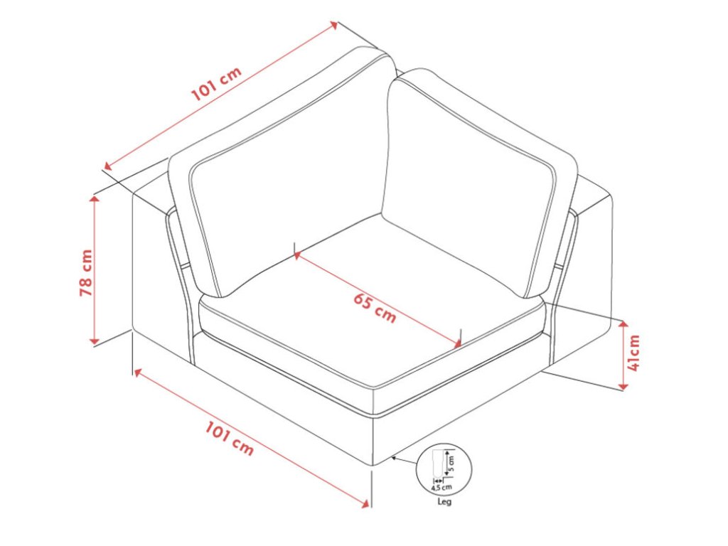 Kvalitní výplň sedáku i opěrek zajišťuje pohodlné sezení, zatímco pevná konstrukce dodává stabilitu a dlouhou životnost. Modul lze snadno kombinovat s dalšími prvky kolekce Duncan a vytvořit tak sestavu přesně na míru vašemu interiéru.