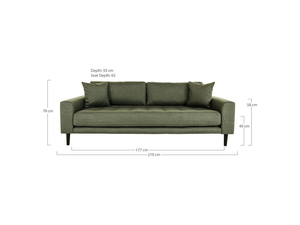 Olivově zelená třímístná pohovka se 2 polštáři, 210 cm, Lido
